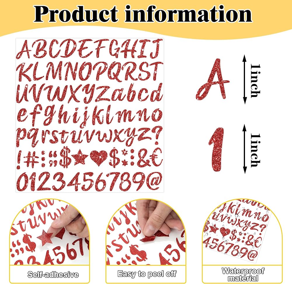• قابلية التطبيق على نطاق واسع: تعتبر ملصقات الأحرف اللامعة هذه مثالية لتزيين الكتب القصيرة ، وزجاجات المياه ، دفاتر الملاحظات ، بطاقات المعايدة ، لوحات النشرات ، لوحات الملصقات ، صناديق البريد ، الملصقات ، إطارات الصور ، النوافذ ، والأبواب. إنها مثالية للمناسبات الخاصة مثل التخرج وحفلات الزفاف وأعياد الميلاد وتقديم هدية رائعة للأطفال والأصدقاء والعائلة. أضف المرح والتألق إلى الحياة اليومية مع هذه الملصقات المبهرة