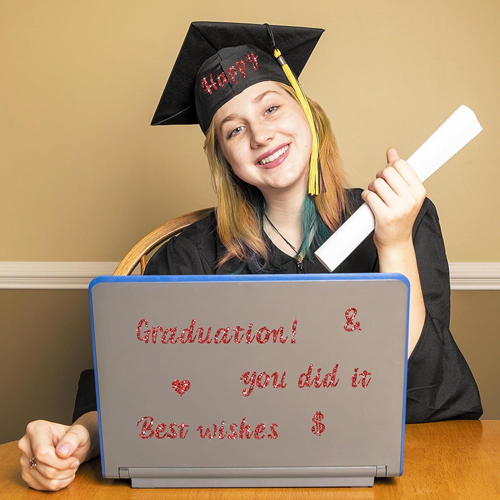 • رسائل CAP للتخرج: توفر رسائل ملصق الذهب 664 PCS طريقة رائعة لتزيين قبعات التخرج. إن نهايةها المتلألئة يمسك الضوء بشكل جميل ، مما يجعل غطاء التخرج الخاص بك يبرز. سواء كنت ترغب في توضيح اسمك أو رسالة خاصة ، تضيف هذه الملصقات لمسة مثالية من الأناقة والاحتفال ليومك الكبير