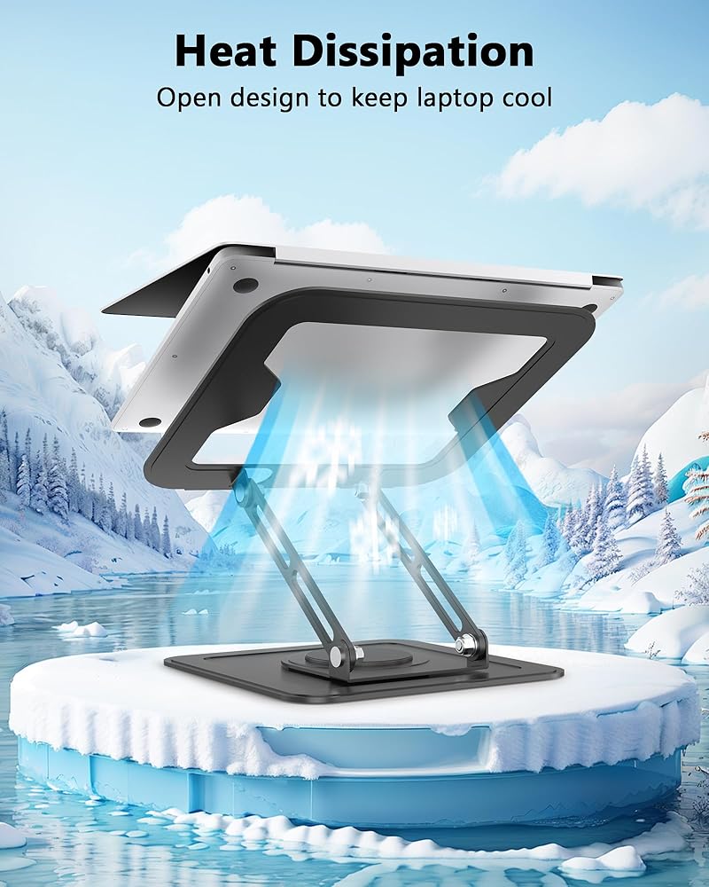 ✔ [مستقر ودائم] - يتم تصنيع حامل الكمبيوتر من مادة معدنية من الألياف المكونة من قطعة واحدة ، والتي تكون أكثر متانة وثباتًا من مواقف الكمبيوتر العادية من سبائك الألومنيوم. تجعل قاعدة الدوران التي تمت ترقيتها أداء الحامل أكثر استقرارًا ، ويحمي السيليكون غير القابل للانزلاق الكمبيوتر المحمول من الانزلاق.