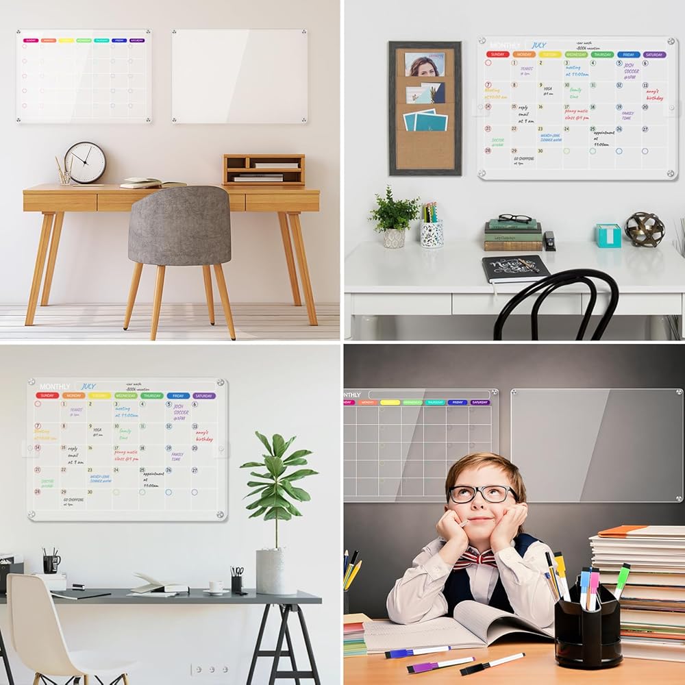 • Premium Material & Easy to Clean: The reusable monthly & weekly planner is made of clear acrylic, which is durable and stylish. the panel is 0.12 inches thick, easy clean and erase, Simply wipe it off with a blackboard eraser(included) or a damp cloth to reuse it again without any smudges or shadows.
