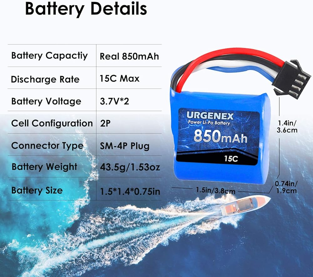 • ★ المزيد من القوة: توصيل الطاقة عندما تحتاجها. توفر حزمة بطارية Urgenex RC معدل تفريغ لدفع وقت تشغيل قارب RC إلى ذروة قدراتها.