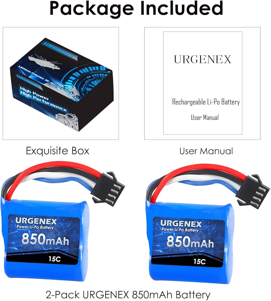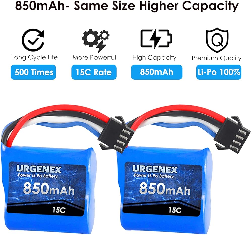 • ★ التطبيق: بطاريات Urgenex 850mAh 7.4V Li-Po ستناسب مع قوارب التحكم عن بُعد UDI001 UDI08 RC. (فقط إذا كان الجهد والبعد ومطابقة التوصيل ، فإنه سوف يناسب)