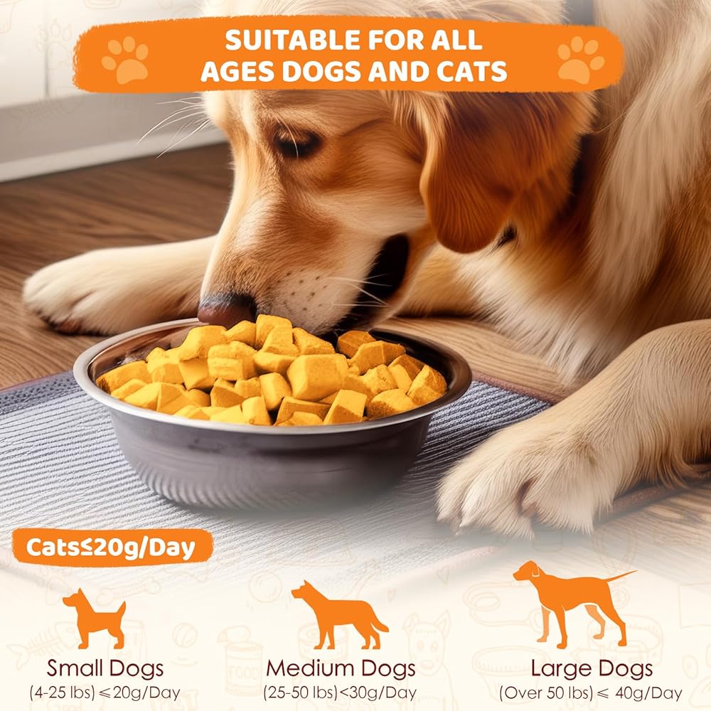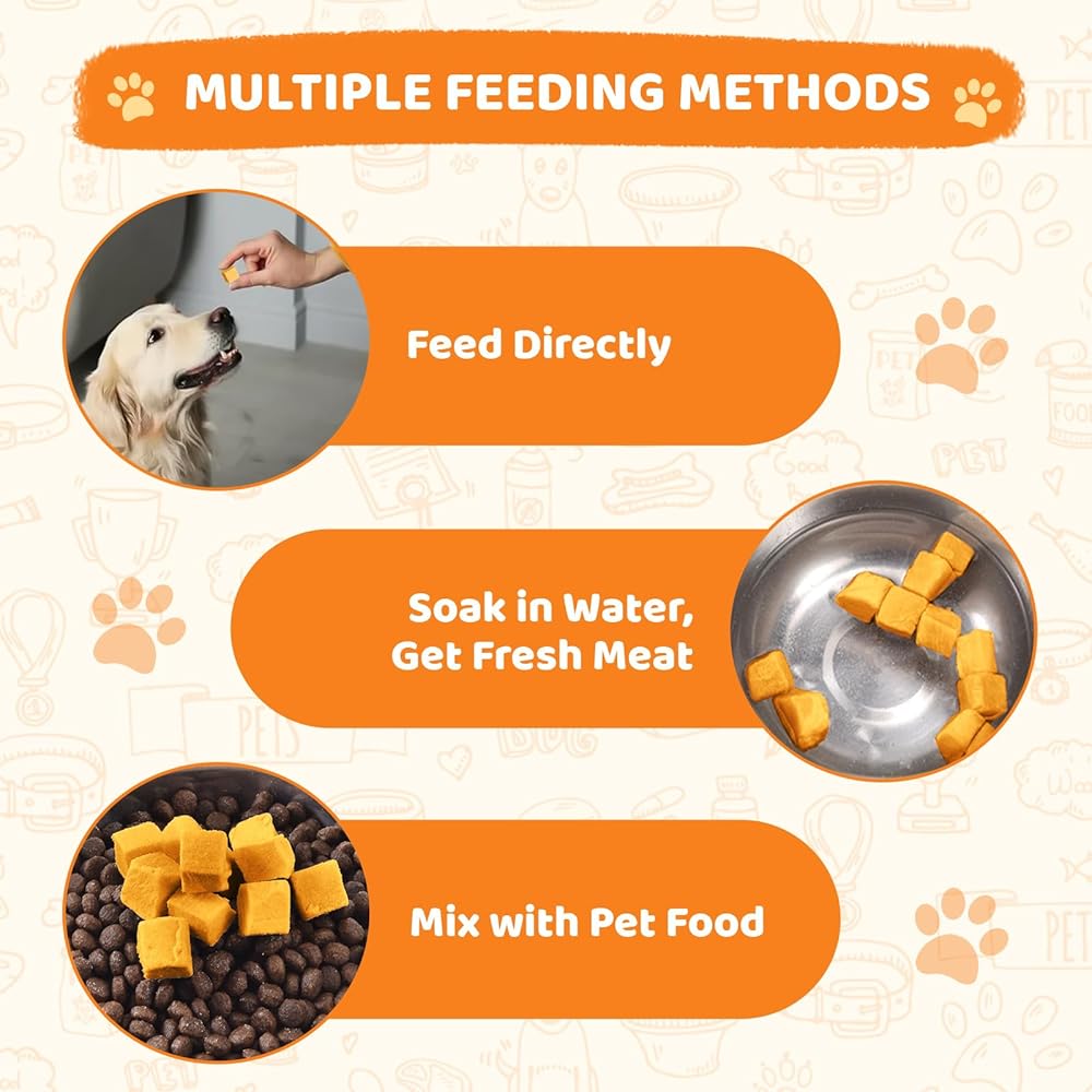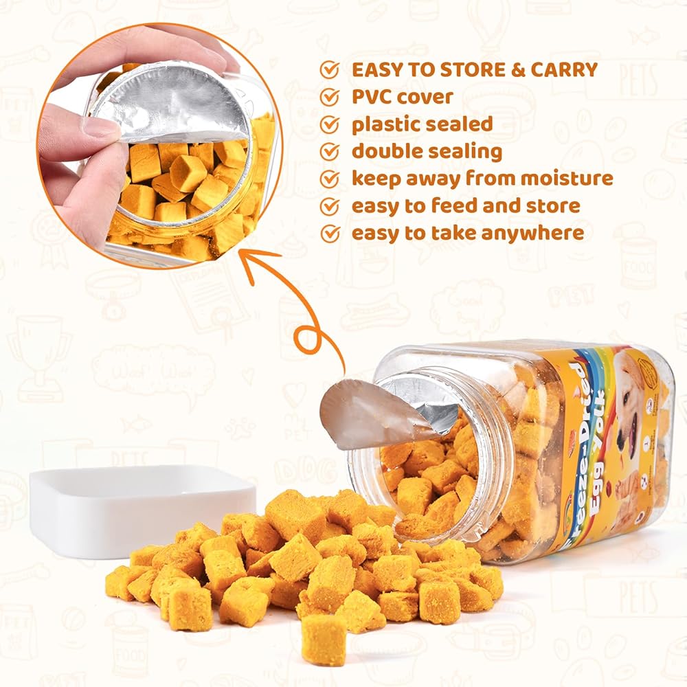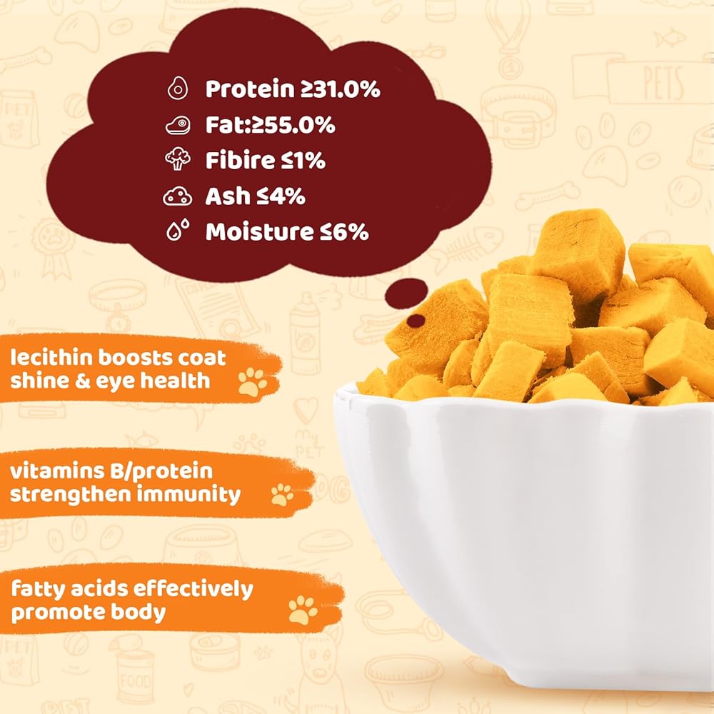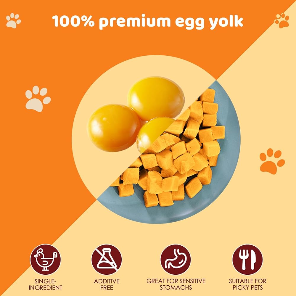 النكهة الغنية بالليسيثين والفيتامين ، معتمدة من الحيوانات الأليفة: يحتفظ صفار البيض المجففة بالتجميد بنسبة 96 ٪ من العناصر الغذائية-يعزز العلم صحة المعطف ، والفيتامينات/البروتين يعزز المناعة. الملمس المقرمش والكلاب الذوق اللذيذة/القطط يتطلعون.