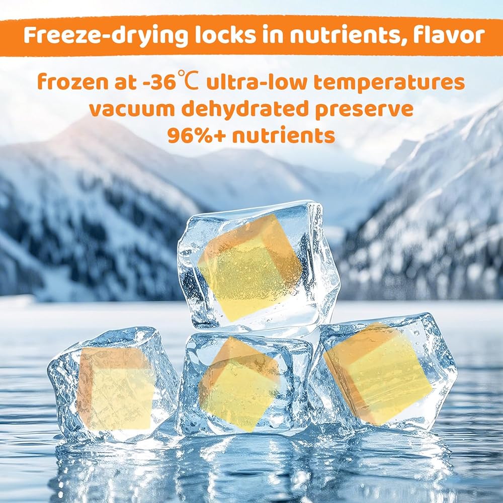 تتجمد المتقدم ، عمر الصلاحية الطويلة: التجميد السريع في درجات الحرارة المنخفضة للغاية يحافظ على 96 ٪ من العناصر الغذائية في صفار البيض الكامل. تحتفظ مكعبات خفيفة الوزن خالية من الفوضى بنكهة/نسيج خام-لا تقلص أو صلابة. مثالي لتخزين!