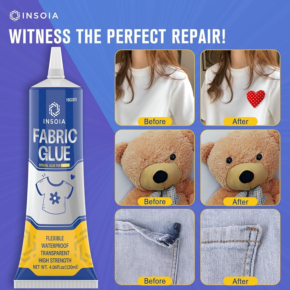 • سهل الاستخدام: لا توجد آلات خياطة أكثر تعقيدًا أو خياطة تستغرق وقتًا طويلاً. يوفر Glue Fabric Insoia بديلًا بسيطًا لا يزداد! فقط قم بتطبيق الغراء ، ونشره باستخدام أجهزة نقل الغراء المضمنة ، واستخدم المقاطع لتأمين طبقاتك. اترك الأمر حتى يجف لمدة 24-48 ساعة ، وقد انتهيت! إصلاح الملابس سهلة للغاية. غراءنا الواضح هو أبيض قبل التجفيف ، وهو أكثر فائدة لك لتتمكن من رؤية منطقة التطبيق عند تطبيق الغراء ، وبعد التجفيف ، ستصبح واضحة ولامعة.