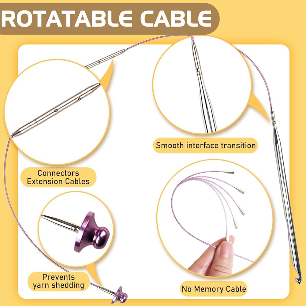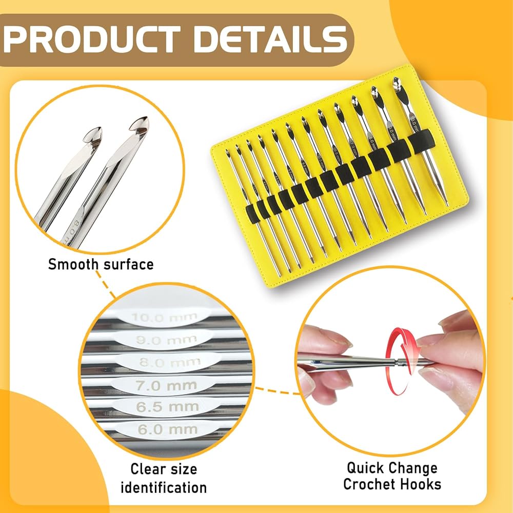 خطافات كروشيه قابلة للتبديل: هذه مجموعة إبر كروشيه تونسية مع حالة تتيح لك تبديل الخطافات بحرية ، مما يتيح لك إنشاء العديد من أنماط الحياكة.