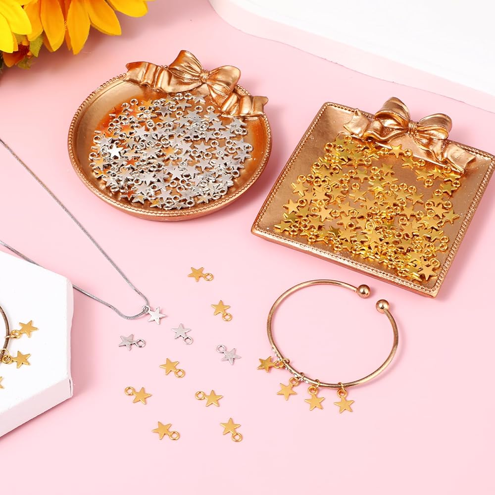 • 【Wide Application】Gold silver charm be used for home decorations, crafts, and jewelry making such as making earrings, necklaces, bangles, bracelets, keychains, or cellphone decorations, etc. Star charm is also suitable for scrapbooking, mobile phones, and handicrafts decoration.