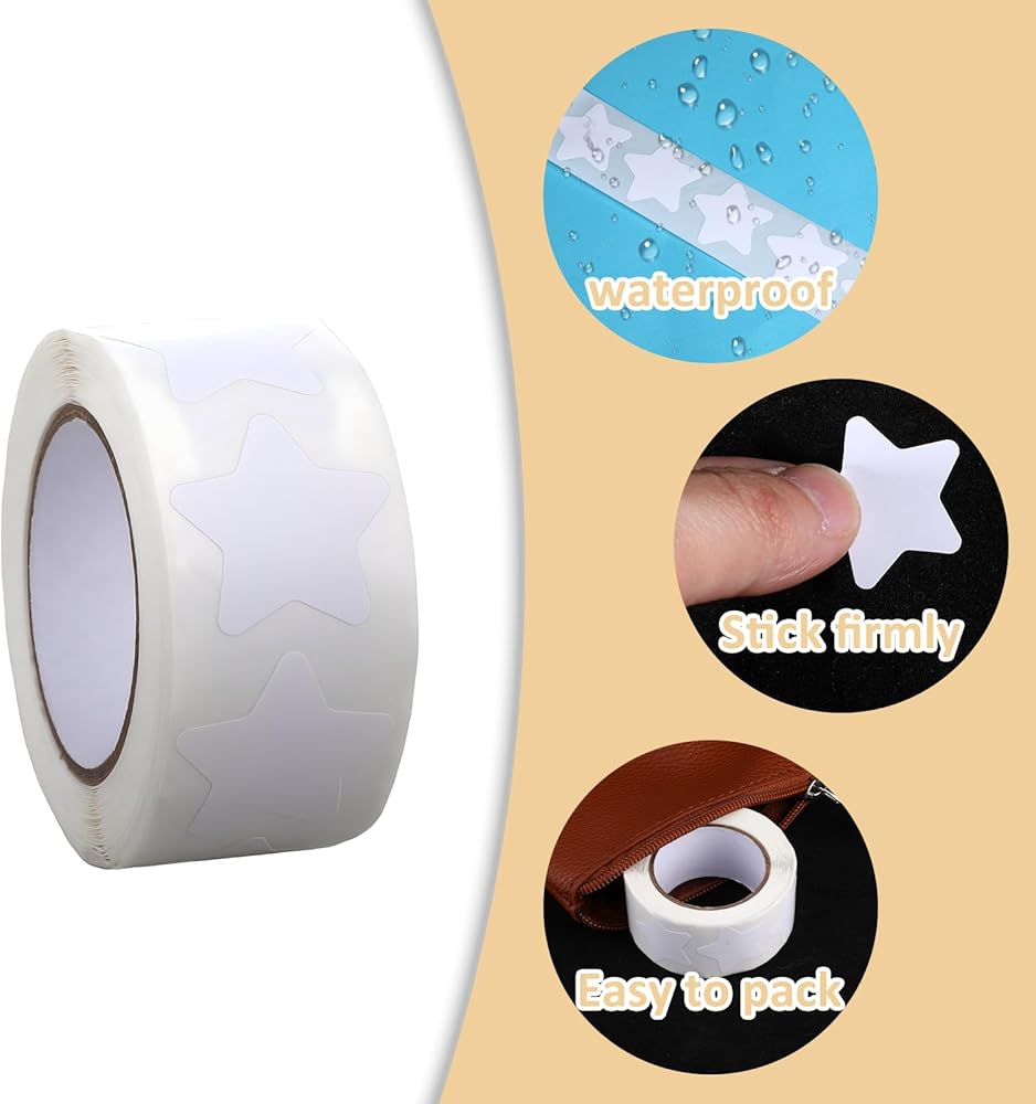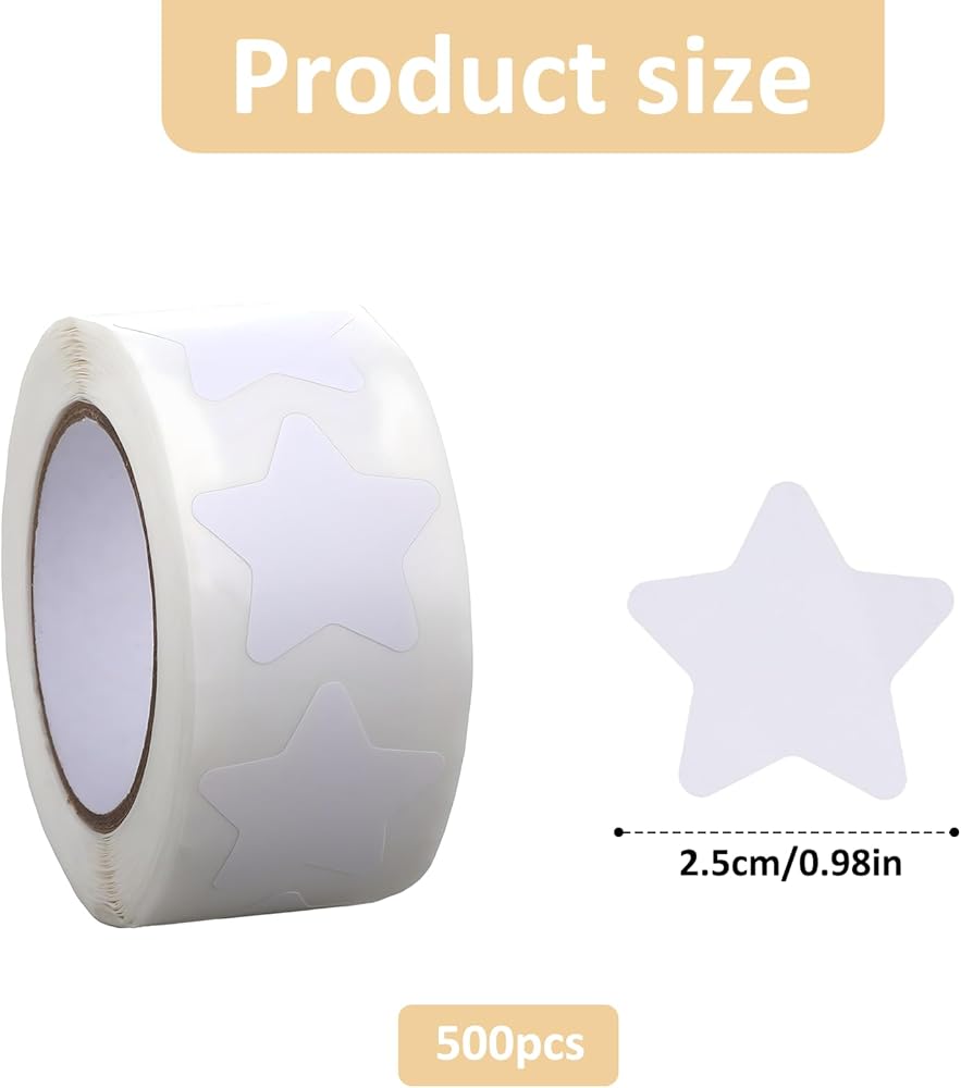 【Writable】You will receive 500 pcs of 1 roll of star stickers for kids reward. The diameter is about 2.5 cm/1 inch. The surface of the star is white, you can write what you want on it