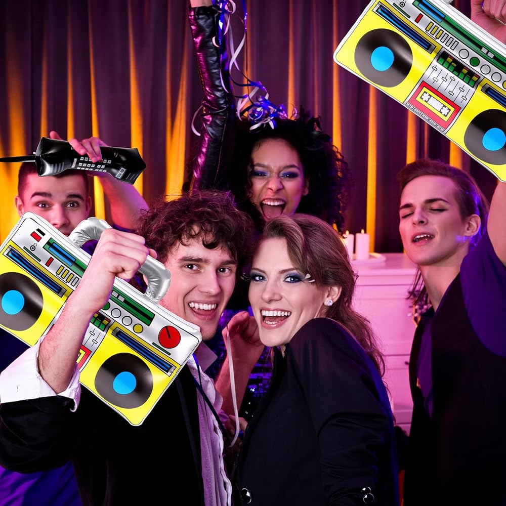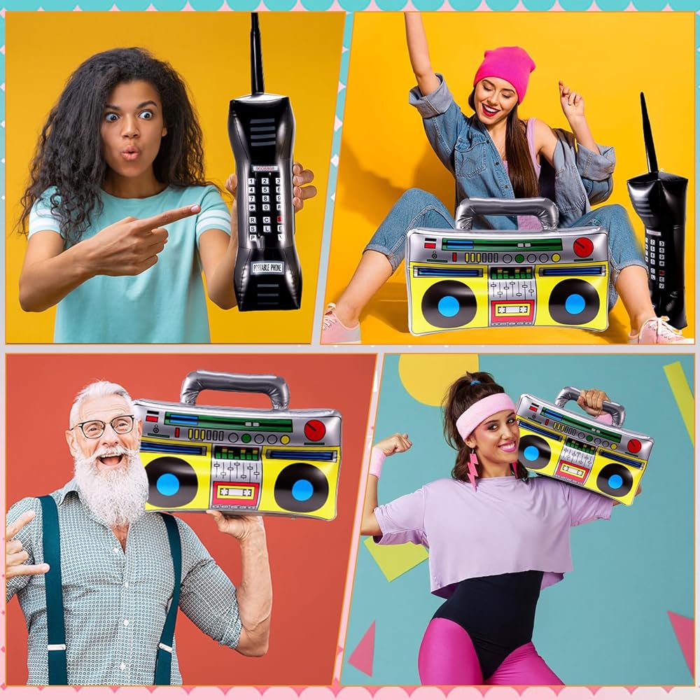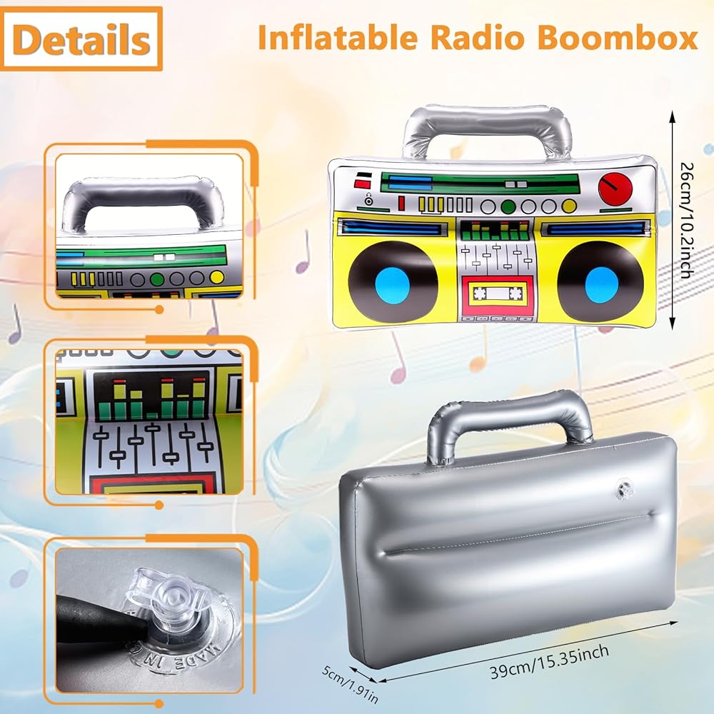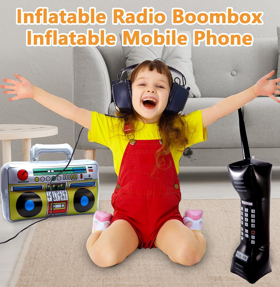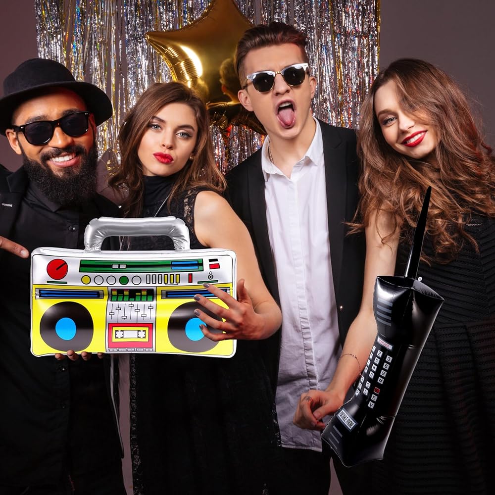 التصميم الكلاسيكي: تم تصميم هذه الحفلات القابلة للنفخ بألوان زاهية وأنماط جديدة لتعزيز الغلاف الجوي لأي حدث. تتميز أجهزة الراديو القابلة للنفخ بتفاصيل مثل الأزرار ولاعبي الكاسيت والمزيد. تتضمن الهواتف المحمولة القابلة للنفخ مفاتيح الأرقام والهوائيات لإضافة لمسة من الحنين إلى ديكور الحدث الخاص بك.