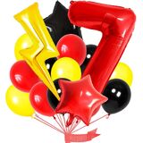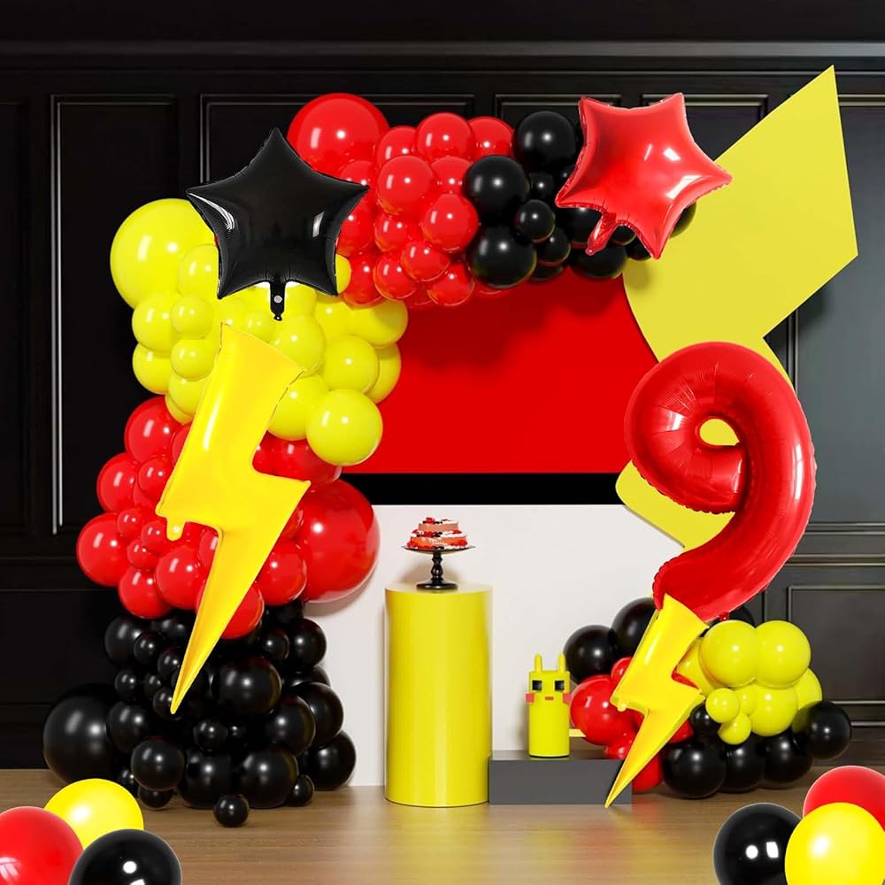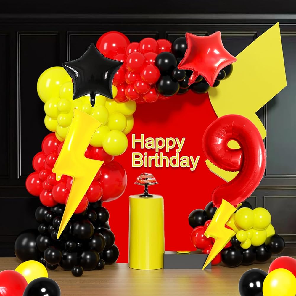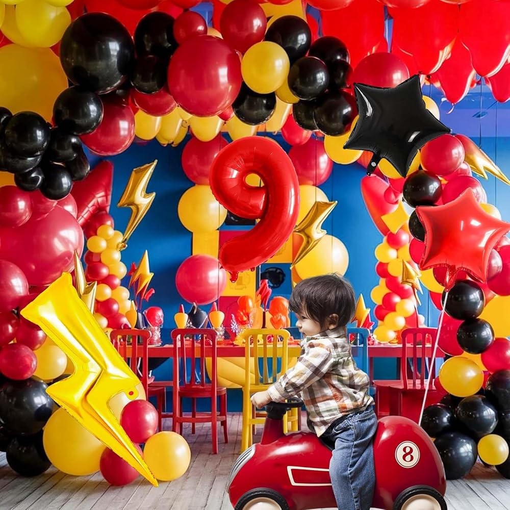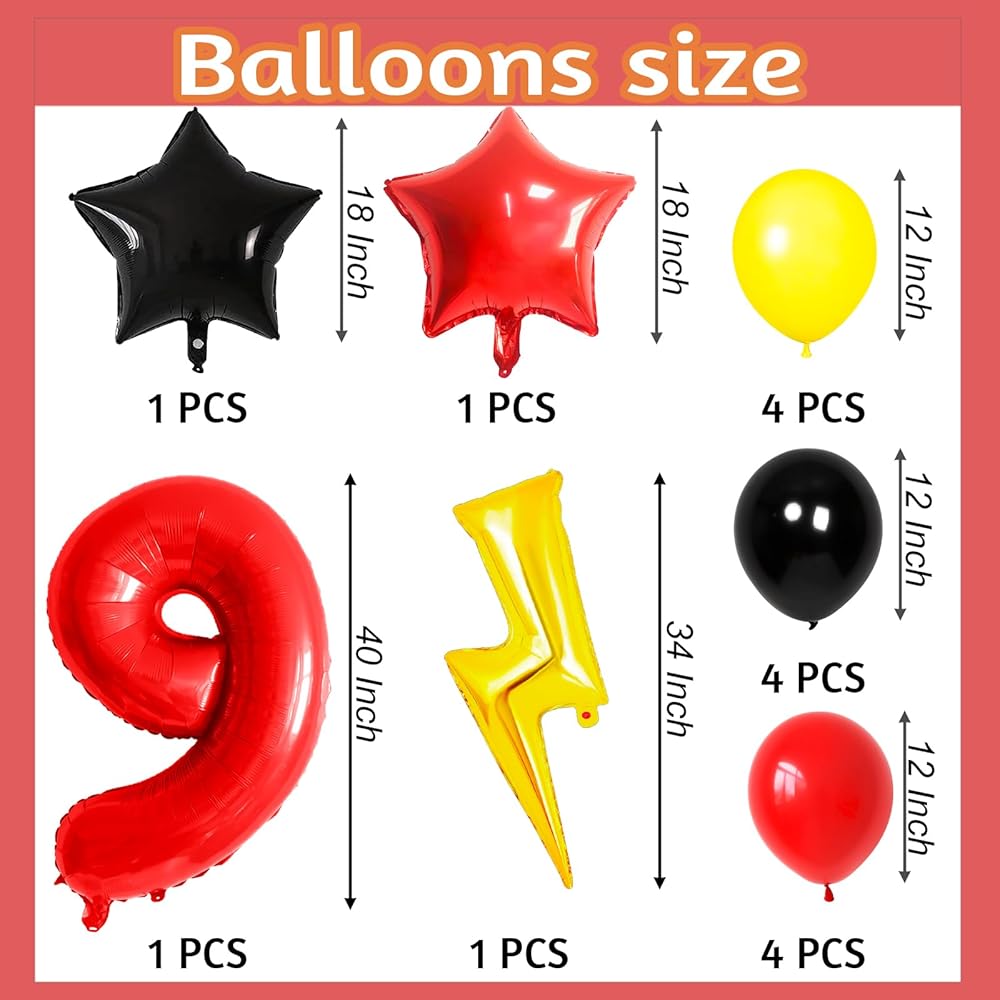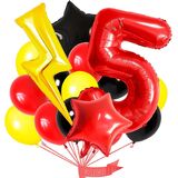 البالونات السوداء الصفراء الصفراء: تشمل محتويات الحزمة بالون رقم 6 بالون ، بالون البرق الذهبي ، 2pcs 18 بوصة بالونات ، 12pcs 12 بوصة بالون الأصفر الأسود الأصفر ، شريط بالون. يبدأ كرنفال حفلة رائعة