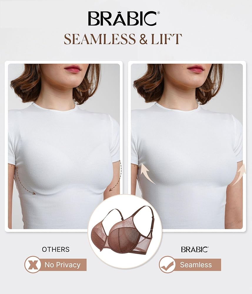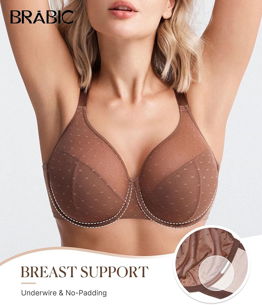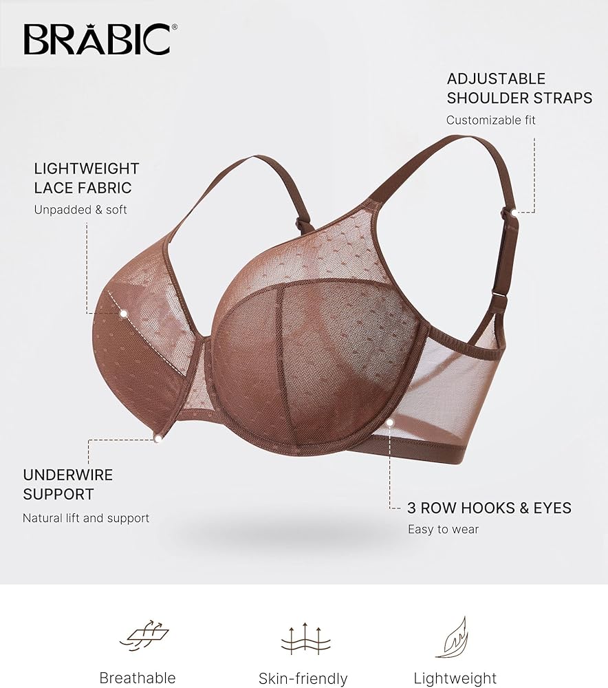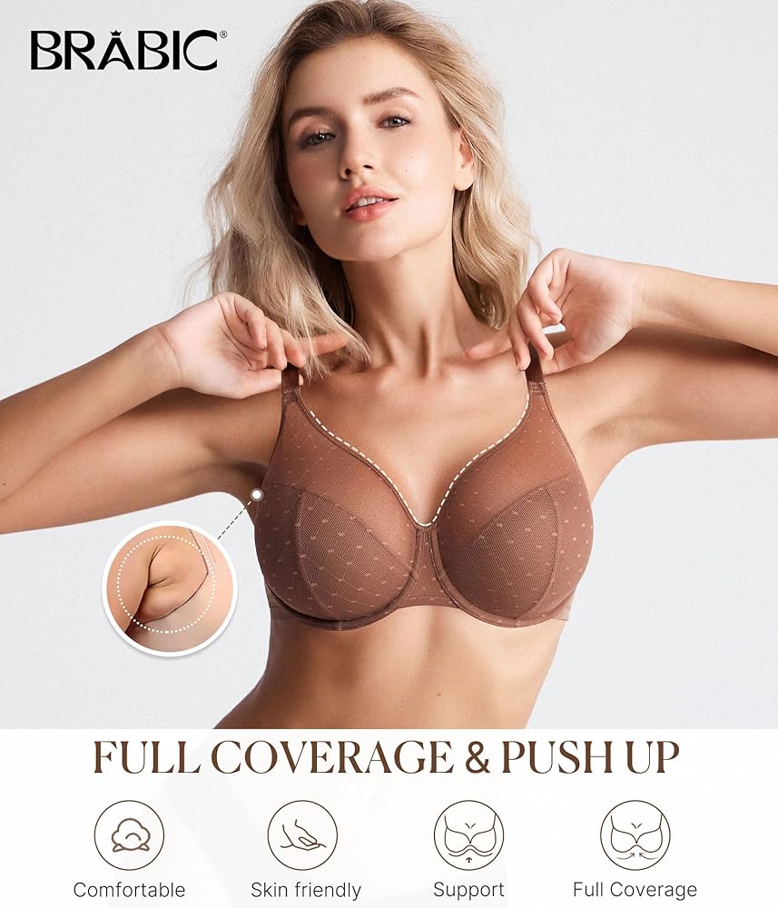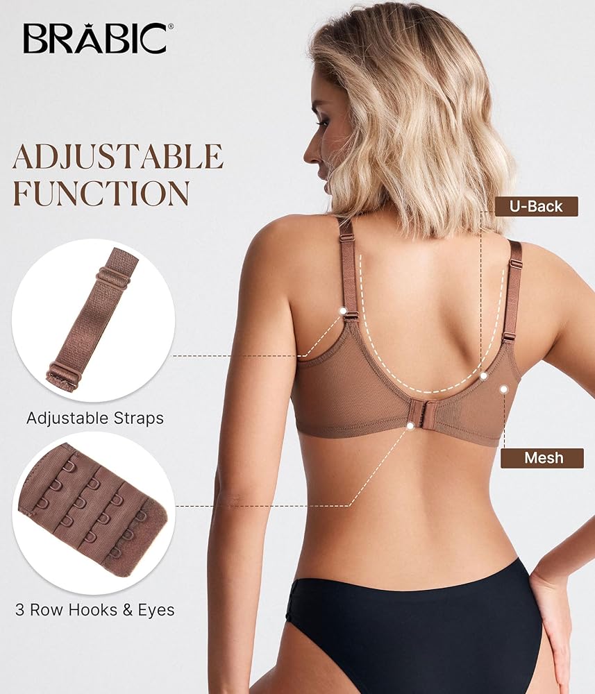 تدعم التغطية الكاملة حمالات الصدر - تصميم التغطية الكاملة لهذا الصدر زائد الحجم يدمج شبكة مرنة داعمة مع بطانة ناعمة. توفر أجنحة الشبكات على شكل حرف U دعمًا إضافيًا ، مما يضمن ظهور الظهر على نحو سلس ومنع الانتفاخات على الجانبين أو الظهر. علاوة على ذلك ، فإن إغلاق الخطاف والعين القابل للتعديل في حمالات الصدر في Brabic Plus للنساء يوفر تجربة راحة معززة للنساء الزائد.