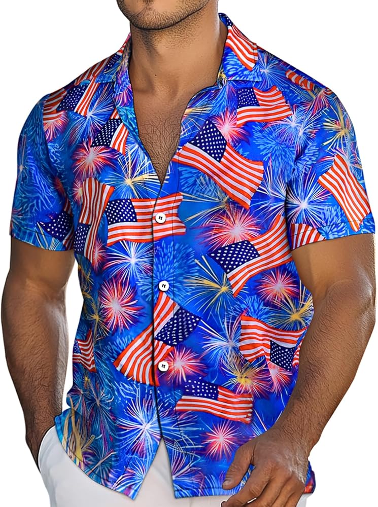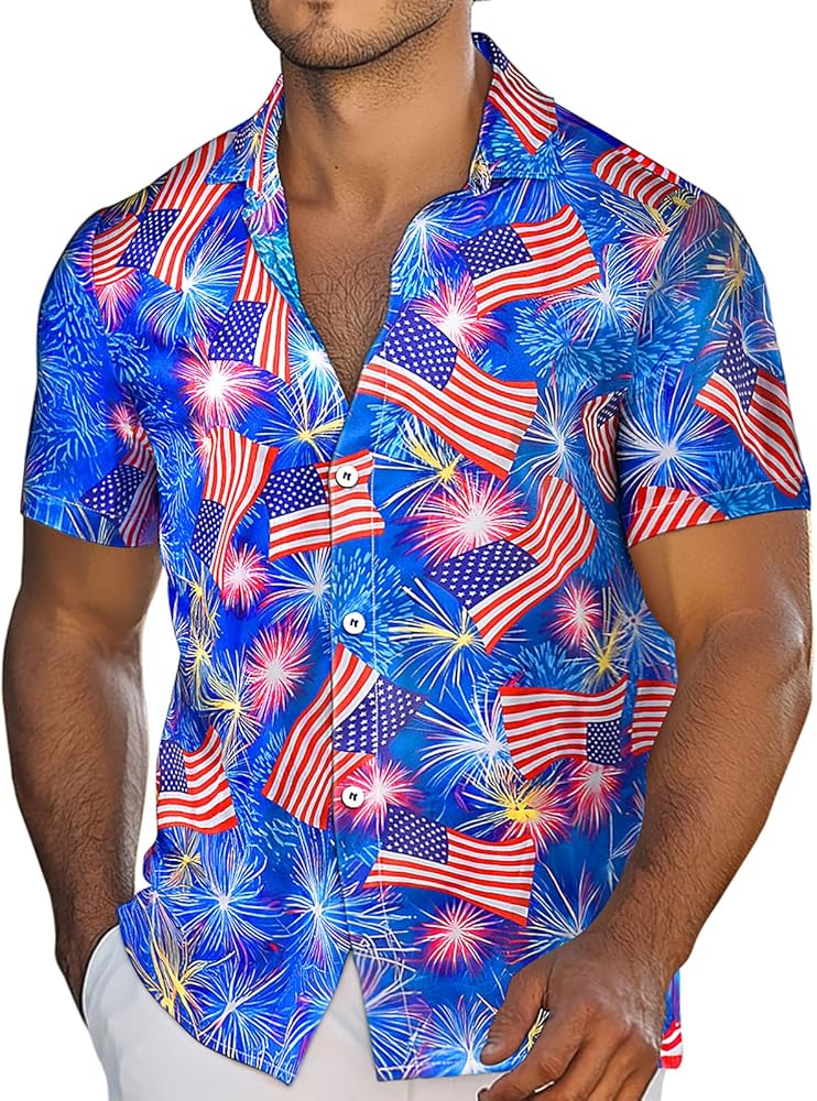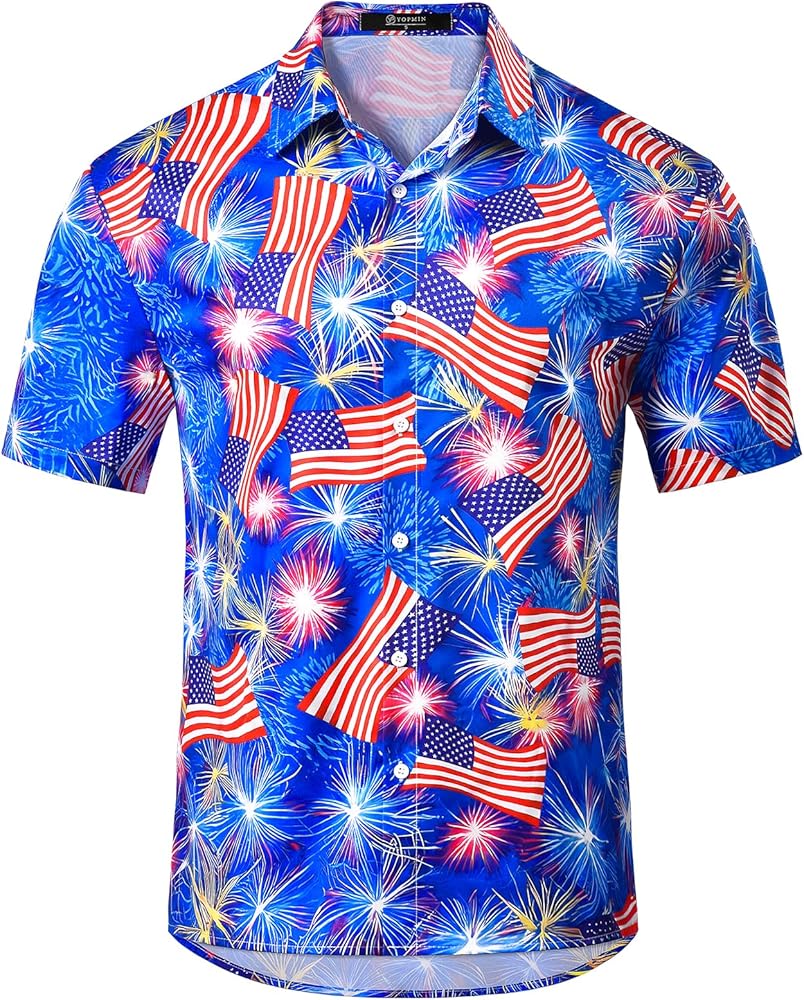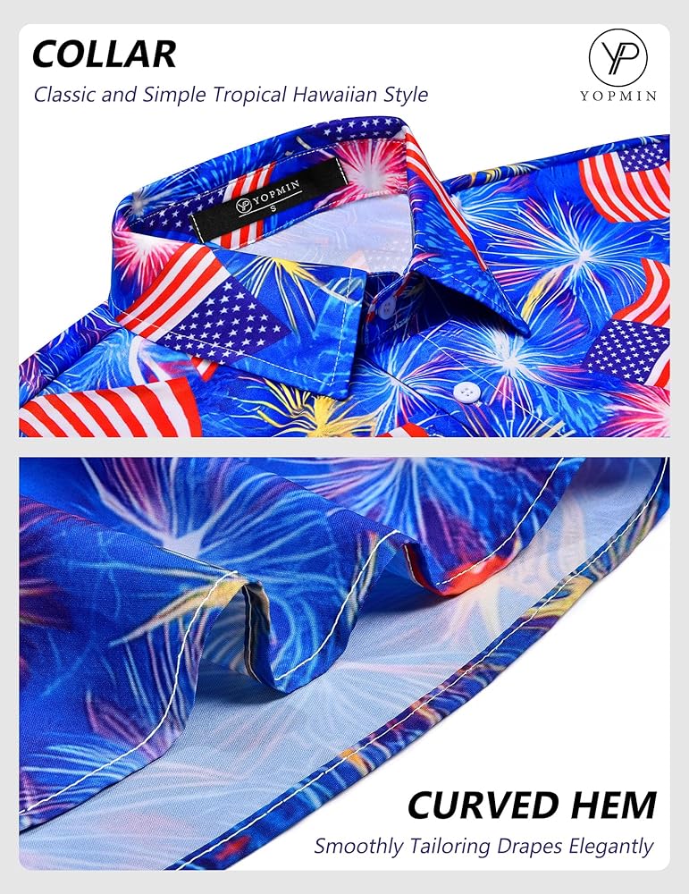 EYE-CATCHING DESIGN The men beach shirt feature button up, short sleeves, and lively prints like palm trees, leaves, , blueberry, flower, parrot, , beach, eagle, sunset and different patterns. Allowing you to emit energy and charm the beach with our bright tropical fruit hawaiian shirts.