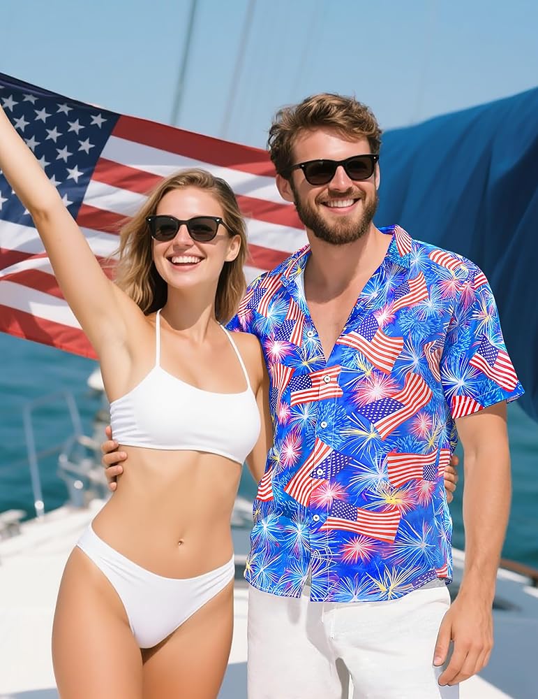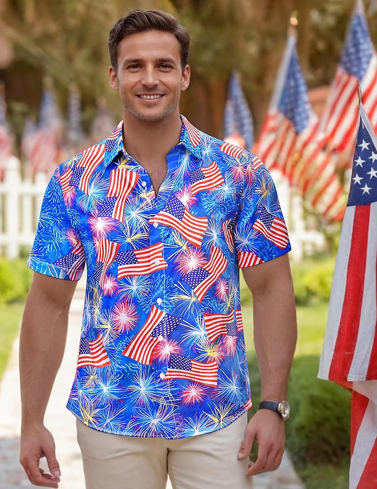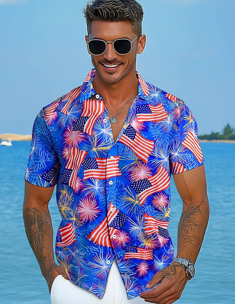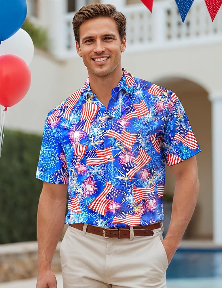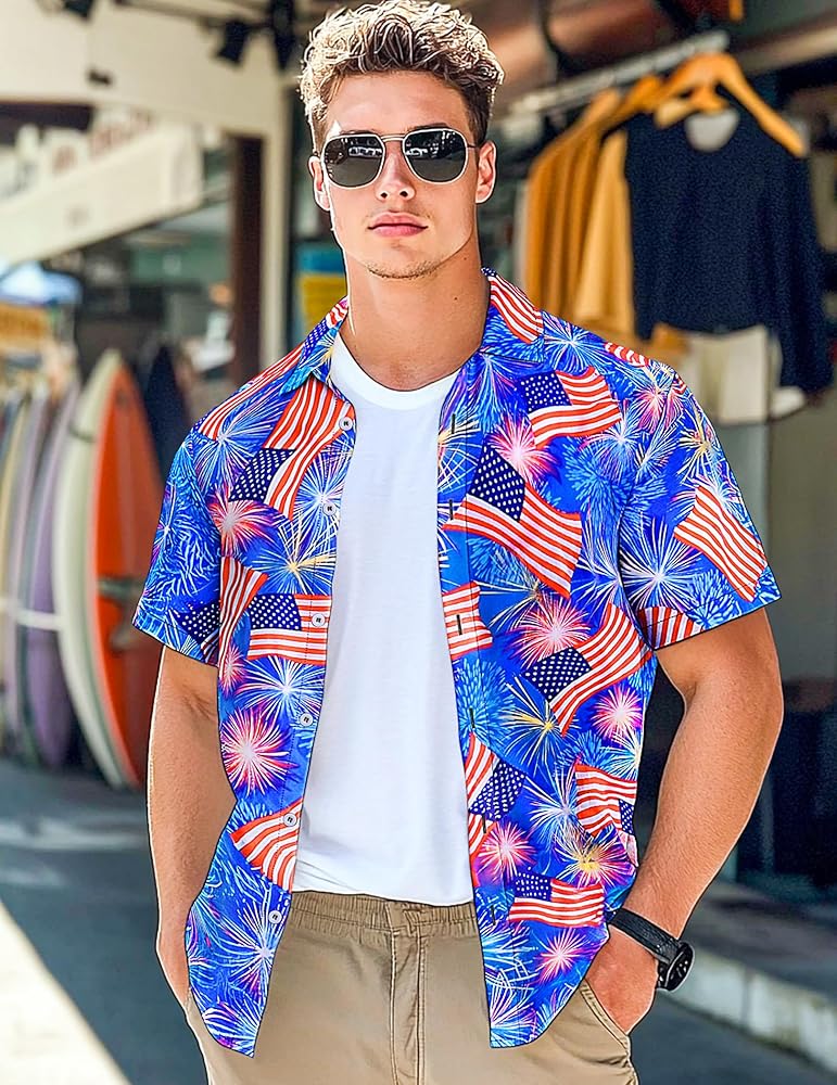 OCCASIONS Men's aloha blueberry button-down shirts is for Hawaiian theme, beach, traveling, tropical, vacation, camping, party, holidays, cruise, fishing, working, daily wear, etc. It's easily to match with casual shorts, jeans, slacks, etc. You can even up your backyard BBQ and gathering with funny holiday shirts for men!
