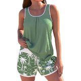 مجموعة ملابس السباحة الكلاسيكية المكونة من قطعتين: ليس فقط للنساء الصغيرات والمتوسطات ، ولكن أيضًا بالنسبة للمسنين الذين تزيد أعمارهم عن 50 عامًا ، وتتزوج ملابس السباحة في Tankini من قمة الدبابات التي ترق معها مع شورتات لوحية متوسطة ، ومزج تغطية متواضعة وأسلوب شعاعي.