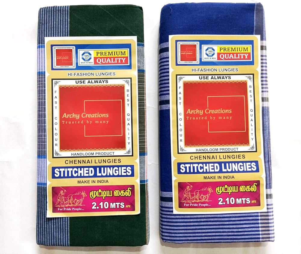 DIMENSIONS: Each lungi measures 2.10 meters (approximately 82.7 inches) in length, perfect for comfortable daily wear