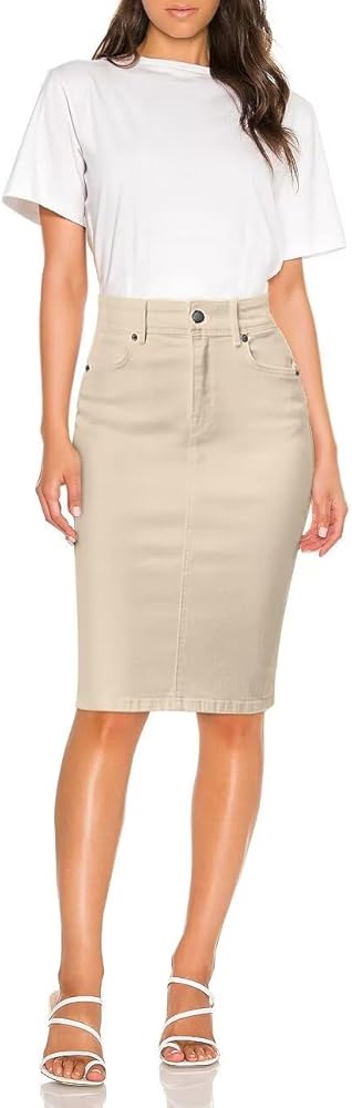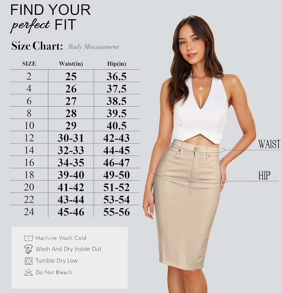 ULTRA-STRETCH FABRIC: Crafted from an ultra-stretch fabric, this women's midi skirt ensures maximum comfort and flexibility, allowing for ease of movement throughout the day.