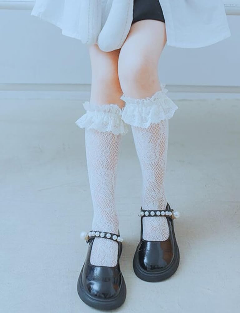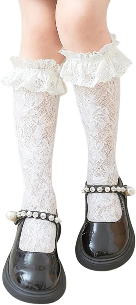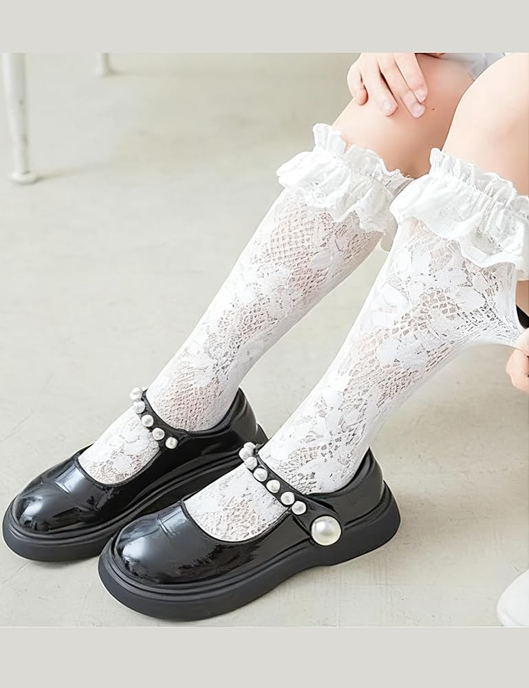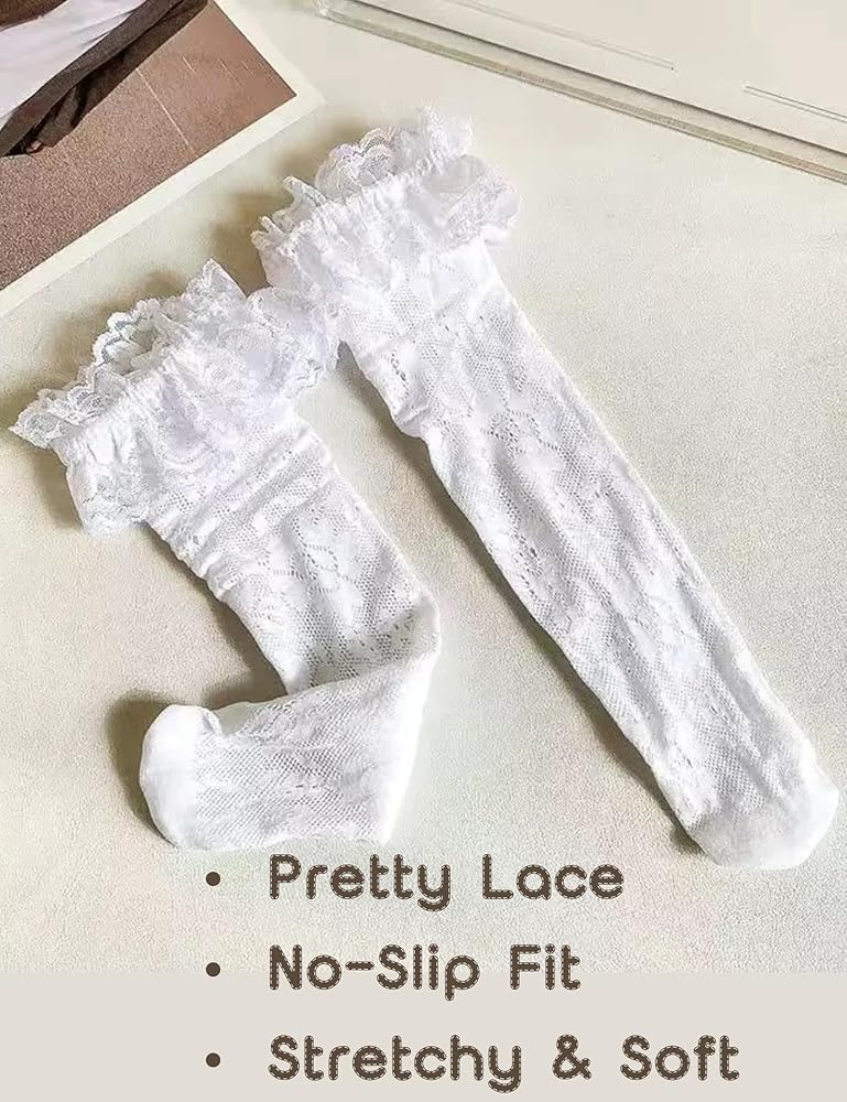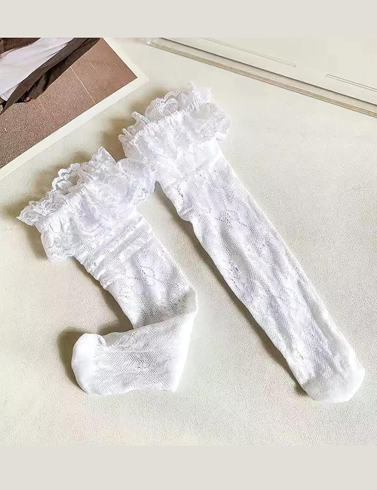 جوارب الفتاة الدانتيل الجوارب الزهور لباسها أبيض الركبة الجوارب الطويلة الطوي