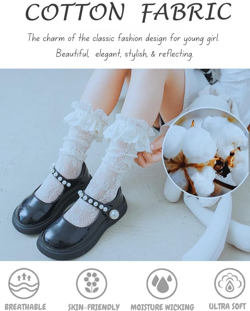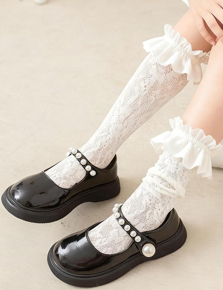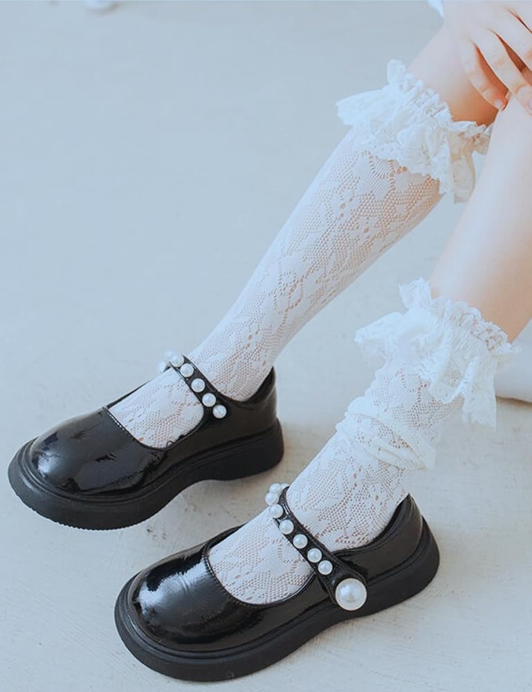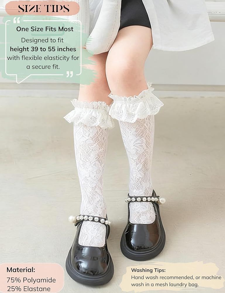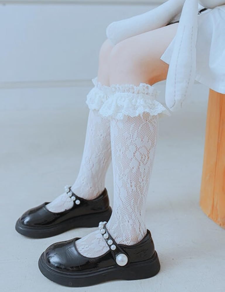 جوارب الفتاة الدانتيل الجوارب الزهور لباسها أبيض الركبة الجوارب الطويلة الطوي
