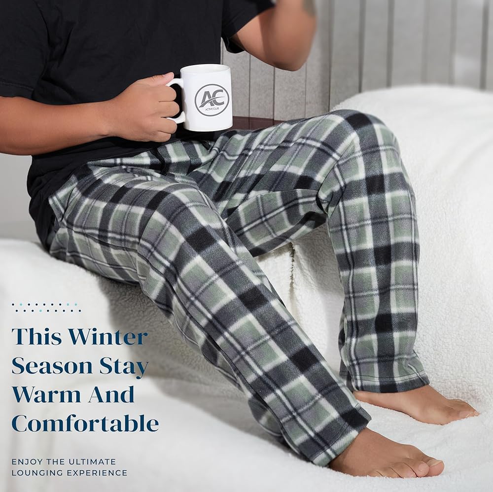 • Cozy Mens PJ Pants: Our plaid fleece mens pajama pants are the perfect comfy pants for relaxing after work, hanging out on weekends, movie nights, and of course, sleeping. Enjoy the comfort and warmth of fleece pants