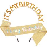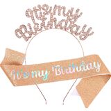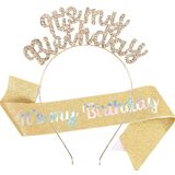 Birthday Headbands Sash for Women Girls Rhinestone Happy Birthday Accessories Favor Supllies
