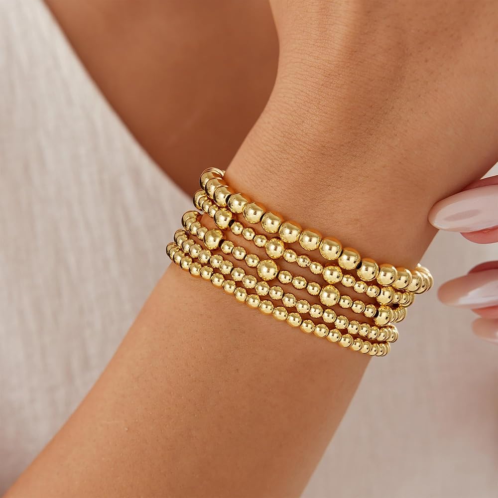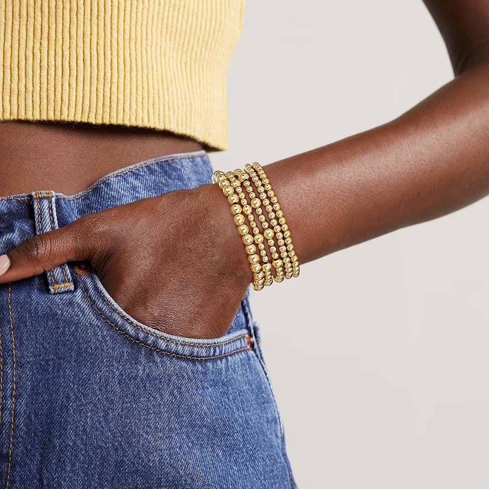 الحجم العام: الطول: حوالي 7.25 بوصة ، مع سلسلة مرنة قوية. حجم حبة صغير 3 مم. حجم حبة كبير يبلغ قطره 6 مم. سوار حبة الذهب الممتدة مرنة ومناسبة لارتدائها على العديد من الرسغين ، مما يجعلك أنيقة ومثيرة في كل لحظة