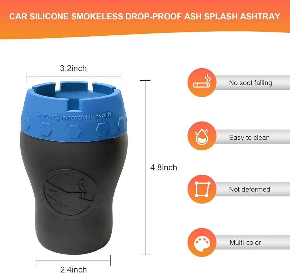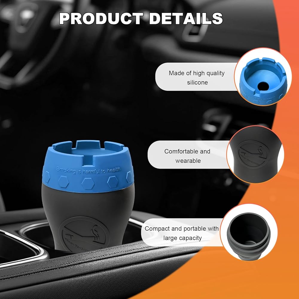 Stylish Appearance: Breaking away from traditional car ashtrays, ours boasts a waist-shaped design that is visually appealing and easy to grip. The combination of a sleek black body and vibrant lid colors further adds a touch of personality and style, making it a standout accessory
