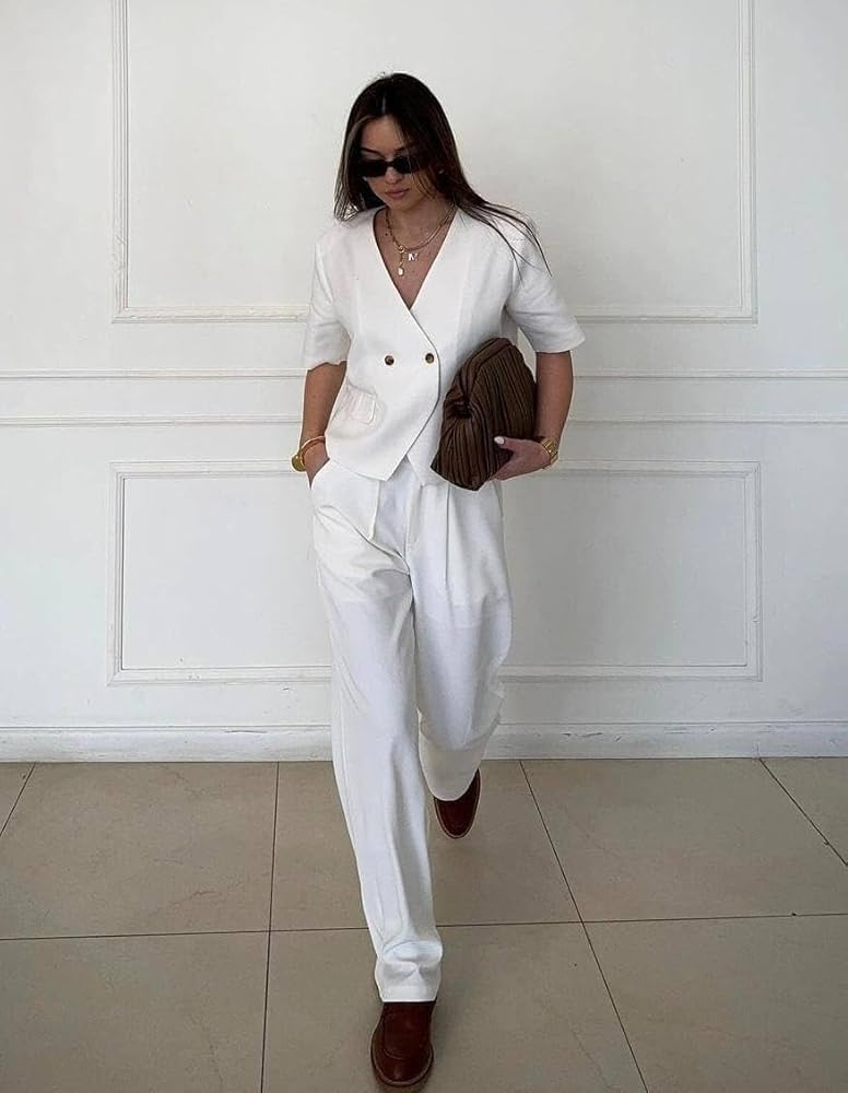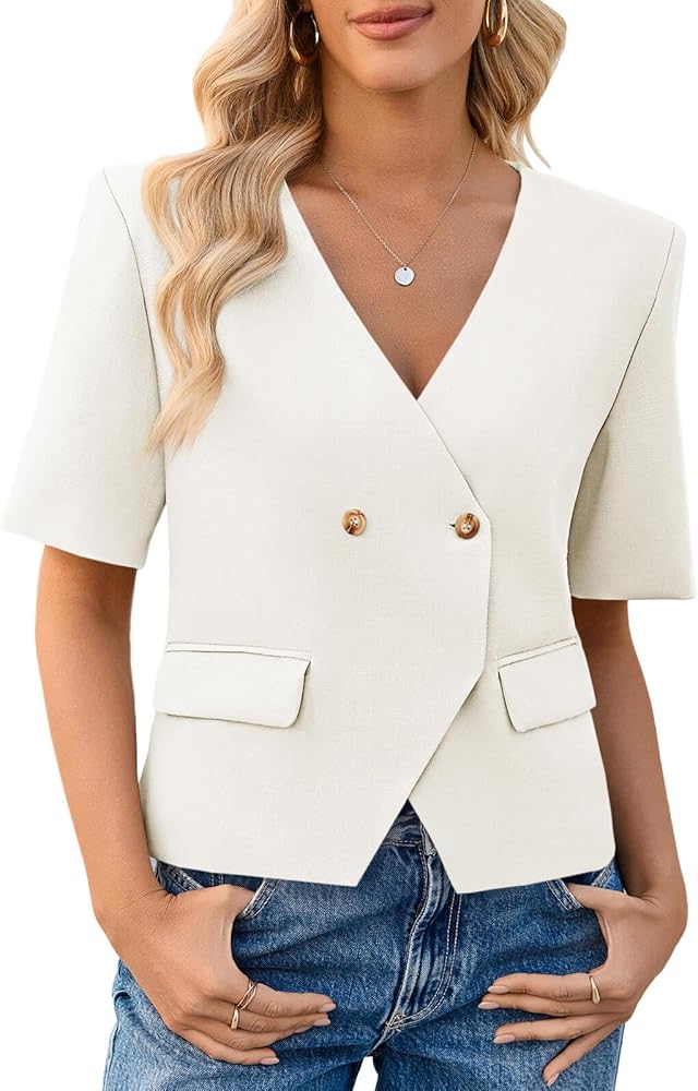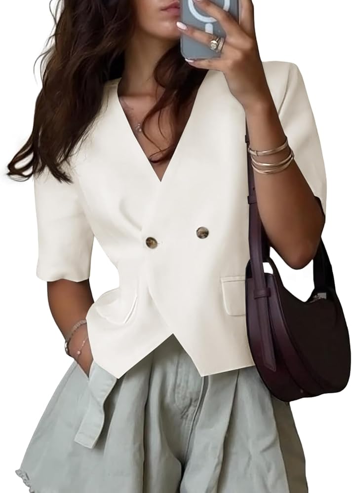 Fashion V Neck: رفع خزانة ملابسك مع سترة الأكمام القصيرة للسيدات ، والتي تتميز بعقار V عصري وملاءمة كبيرة تتماشى تمامًا مع اتجاهات الموضة الصيفية في الربيع 2025