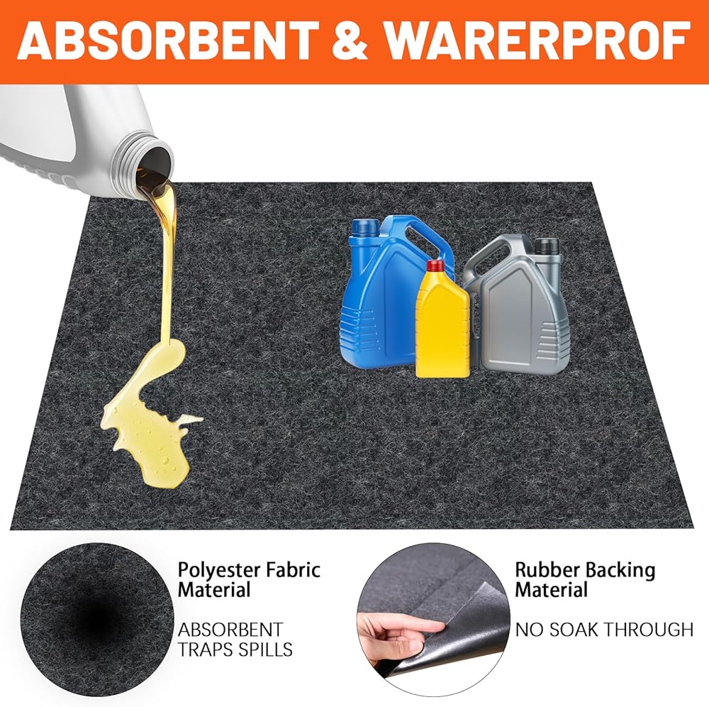 الحجم الكبير: حجم حصيرة الجراج هو 36 "× 60" ، الحجم المثالي للدراجات النارية والسيارة وأرضية المرآب الخاصة بك. من السهل قطع حصيرة انسكاب زيت المرآب مع مقص ولن يتلاشى مات. يمكنك إنشاء الشكل الذي يناسب المرآب الخاص بك مع مقصك