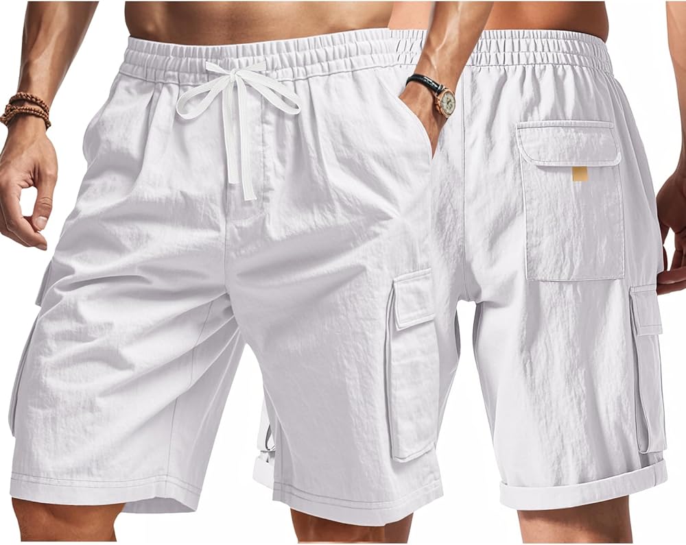 Fabrics:Crafted with premium elastic fibers, these cargo shorts deliver exceptional breathability and skin-friendly softness, while the high-stretch waistband adapts to body movements for unrestricted flexibility during daily wear.
