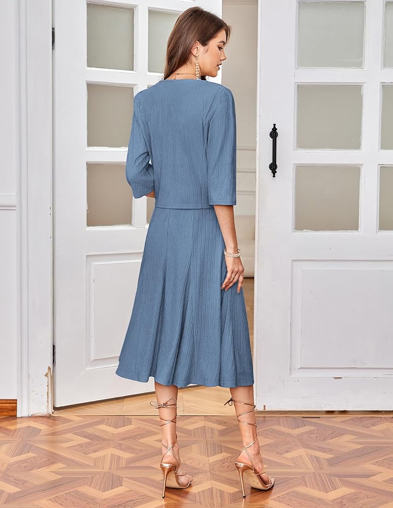 تفاصيل الترتر والدانتيل المبهرة: خط العنق المزين بالدانتيل ورش من الترتر يضيف لمسة من البهجة. محيط الخصر المجهز يظهر المنحنيات الخاصة بك. ينسق الدانتيل والترتر على السترة بشكل جميل مع خط العنق ، ويتميز بأكمام متوسطة الطول مما يخلق مظهرًا رومانسيًا متطورًا ورومانسيًا
