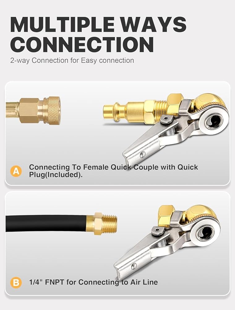 2 حزمة قفل الإطارات تضخيم تشاك - فوهة هواء مقاومة للتسرب للسيارة/الشاحنة/الدراجة (0-150 رطل) - الاتصال الفوري لضاغط الهواء ، المضخة - النحاس الشاق (Fit Universal)