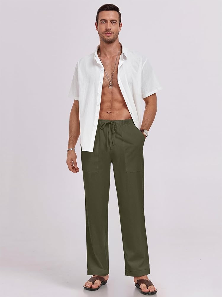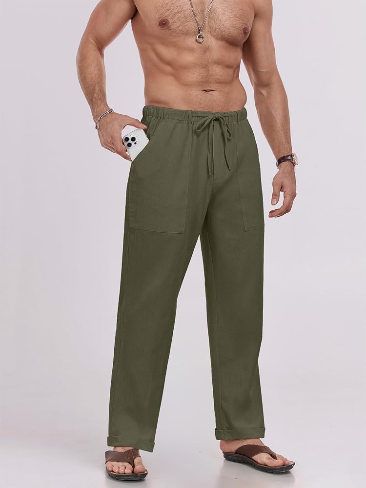 【مناسبة】 مثالية لفصل الربيع والصيف والخريف. سروال الكتان الرجالي مناسب للارتداء اليومي أو الإجازات أو الشاطئ والمشي وحفلات الزفاف واليوغا والركض والرقص أو المدرسة أو المهرجانات أو التسكع في المنزل أو الأنشطة الخارجية أو الحفلات أو مناسبة أخرى تحبها. الهدية المثالية لصديقك وأبي في أيام العطلات الخاصة