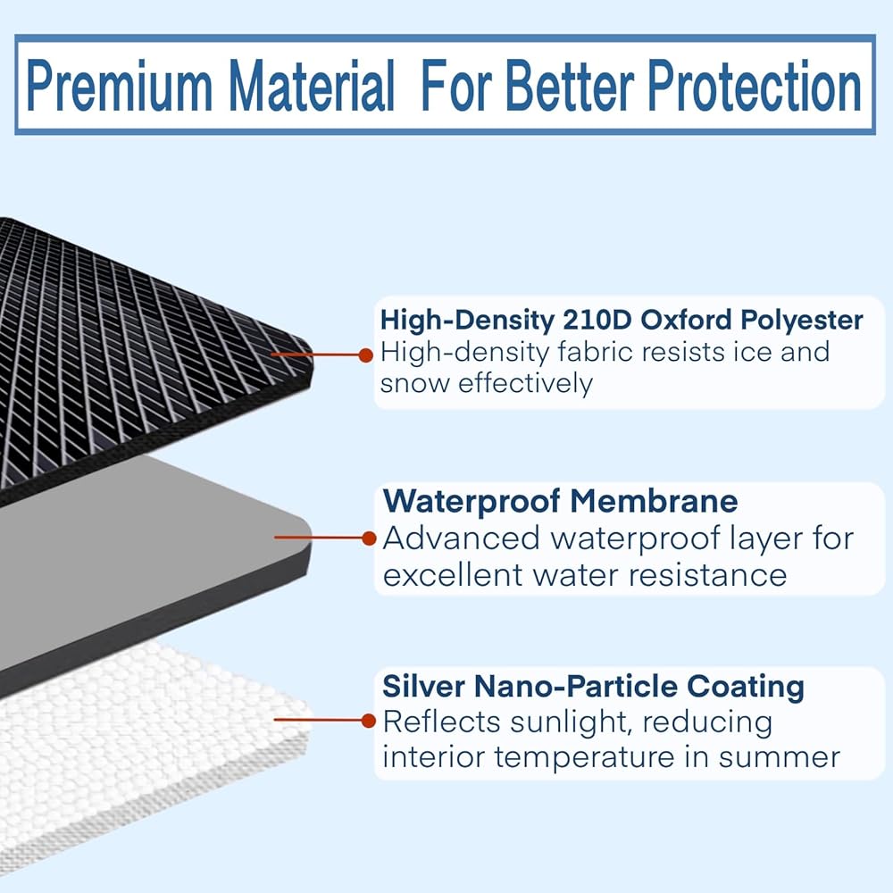 [Universal Fit with Secure Installation] Our cover is designed to fit most vehicles, including sedans, SUVs, and trucks. The elastic straps and anti-slip design keep the cover securely in place, even in strong winds, offering hassle-free installation in seconds.
