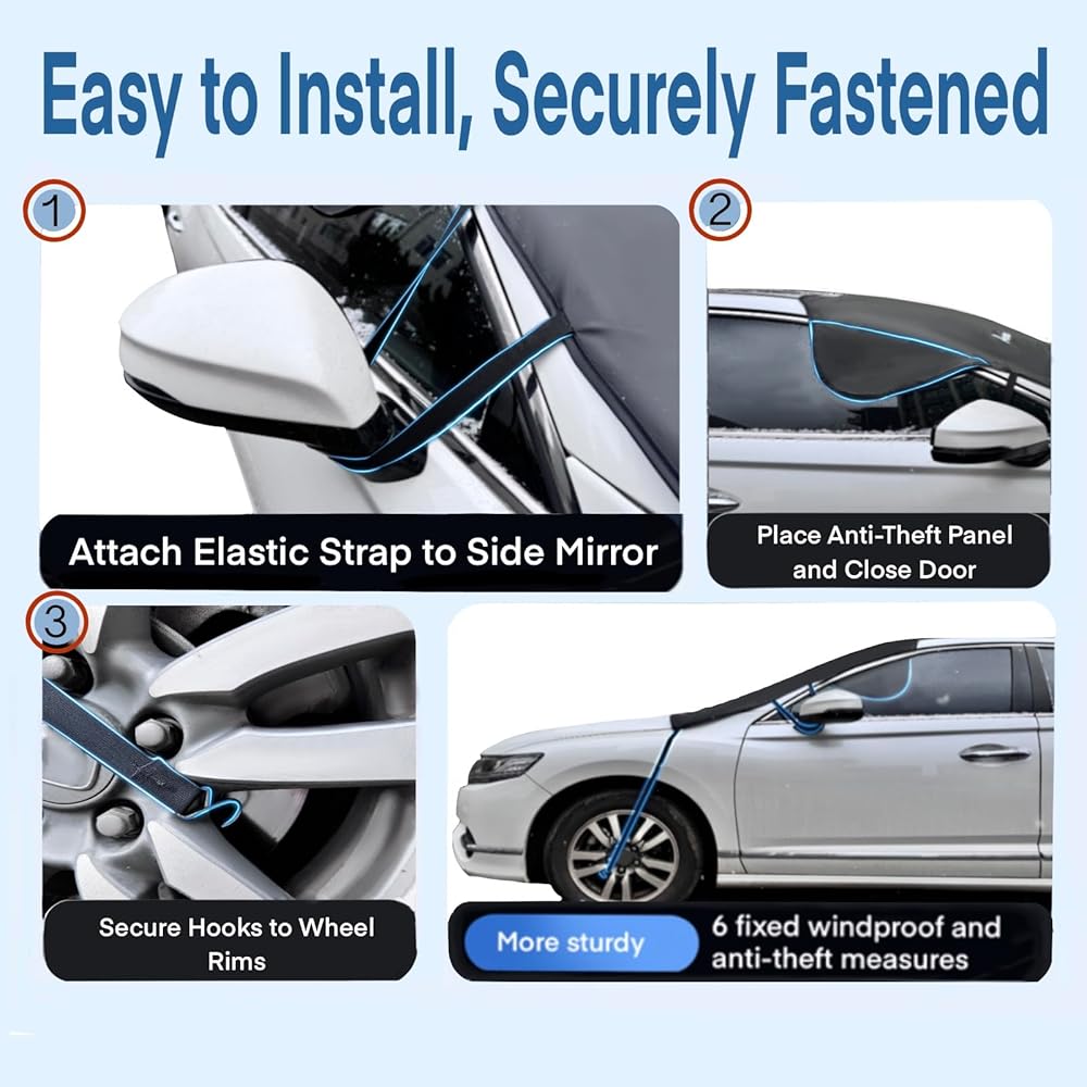 [Ultimate Protection Against the Elements] Crafted with premium materials, this windshield cover provides strong protection against UV rays, rain, snow, hail, and wind. Its durable design ensures your car stays safe and your windshield clear, no matter the weather.
