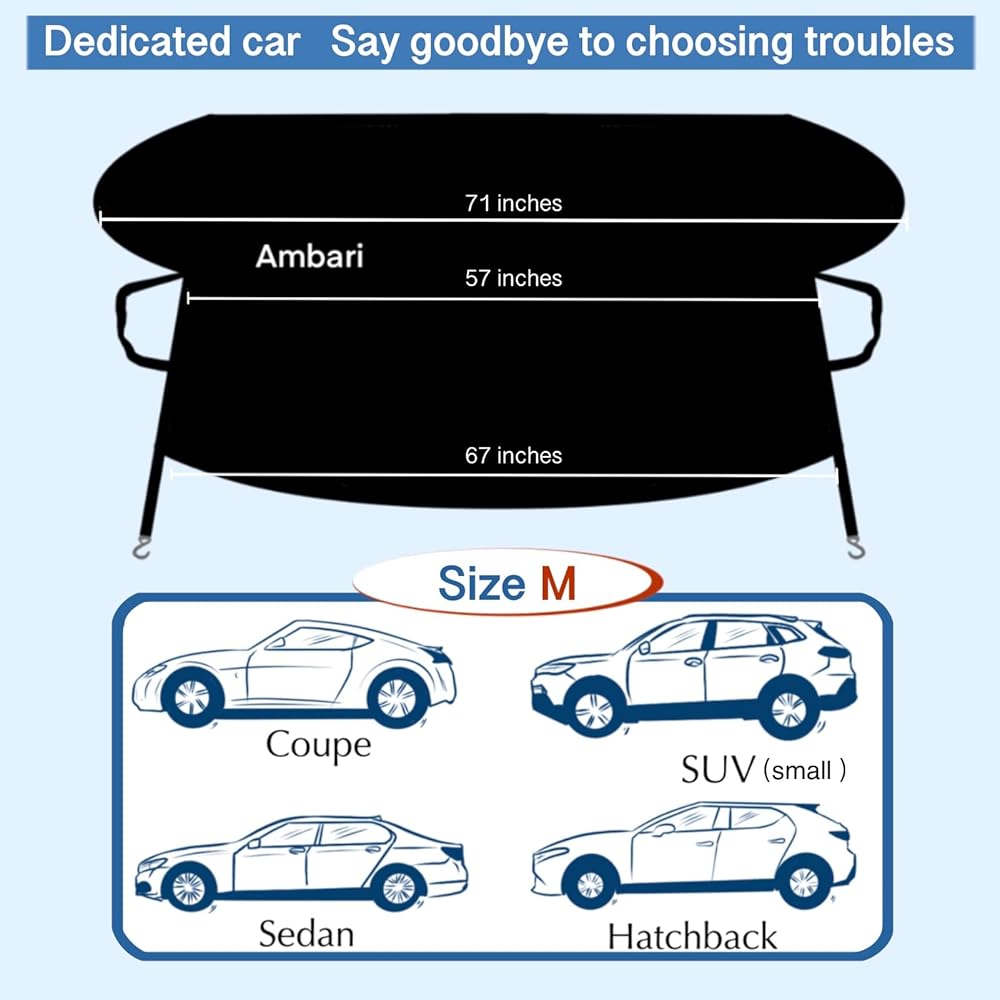 غطاء الزجاج الأمامي المزدوج للثلج والثلوج ، وحماية من أشعة الشمس ، والجانب العاكس الفضي لجانب الصيف والأسود لفصل الشتاء ، وحامي البرد ، ويتناسب مع معظم السيارات ، وسيارات الدفع الرباعي ، والشاحنات ، ودرع الصقيع المقاوم للماء M