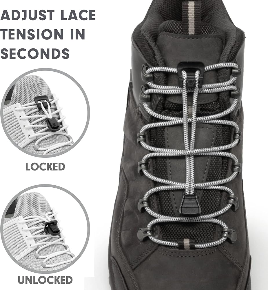 Xpand Quick Release Round-Lacing system is one of a kind. Our elastic lacing system includes our zero memory round elastic shoelaces allowing kids, adults, athletes, elderly and everyone in-between to convert almost any shoes or boots into a fully adjustable no tie slip-ons. The Xpand Lacing System includes (2) 52” Xpand Laces which can expand to over 100", 2 Locks to secure your laces in place and 2 Pull Tabs to give your laces a finished look. Our patent pending locking mechanism enables you to quickly tighten and lock your desired tension/fit in place or simply unlock by pulling the tab and pop the lock to release the pressure. Get comfortable or get serious in 3 seconds flat. It's that simple! Our Quick Release Round-Lacing system is perfect for serious athletes, runners, triathletes, hikers, bikers, kids, elderly, handicap, people with feet that swell, individuals lacking fine motor skills and anyone else that has trouble with standard shoelaces. Our lock mechanism is guaranteed not to slip and it's nearly impossible for our system to come unlocked or loosened during activities. Our no tie shoelaces requires no hard bulky clamps to squeeze like other systems on the market. Simply lock/unlock and slip on and go.