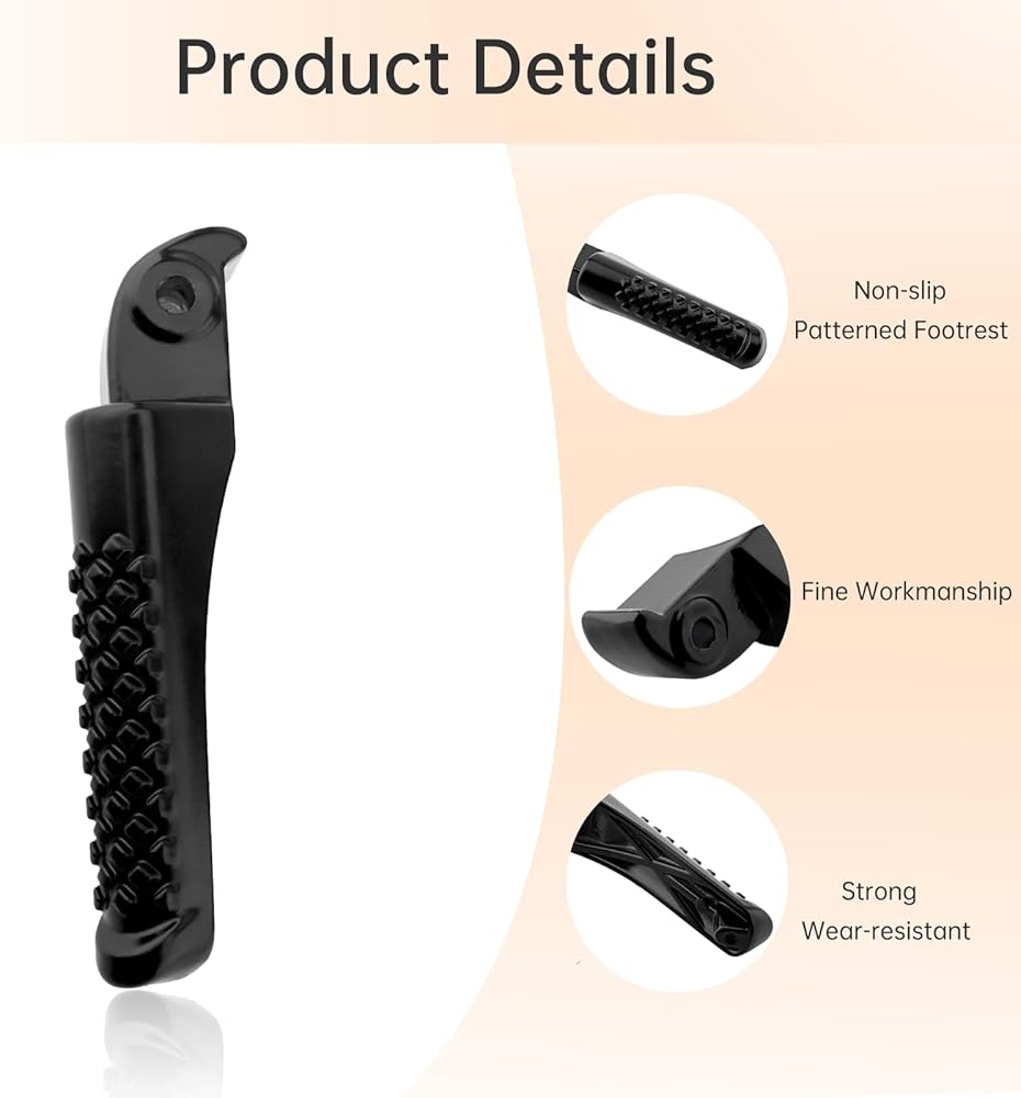 - The mesh design on the surface of the foot pegs increases stability and slip resistance during riding, while also enhancing the overall appearance and personalization of the motorcycle.