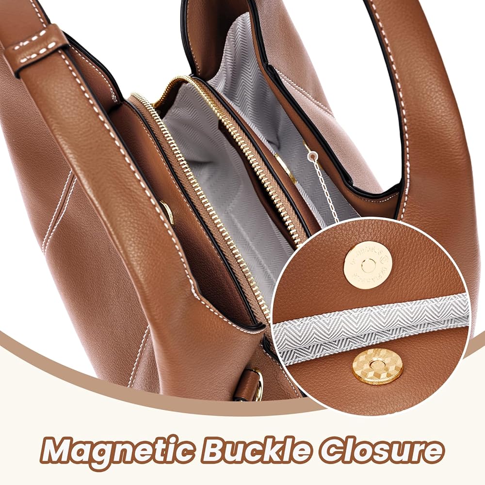 PRACTICAL DESIGN: The women's handbag has magnetic buckle and zipper closure for you to choose, which is both safe and convenient. It comes with a detachable shoulder strap and can be carried as a handbag or a shoulder bag
