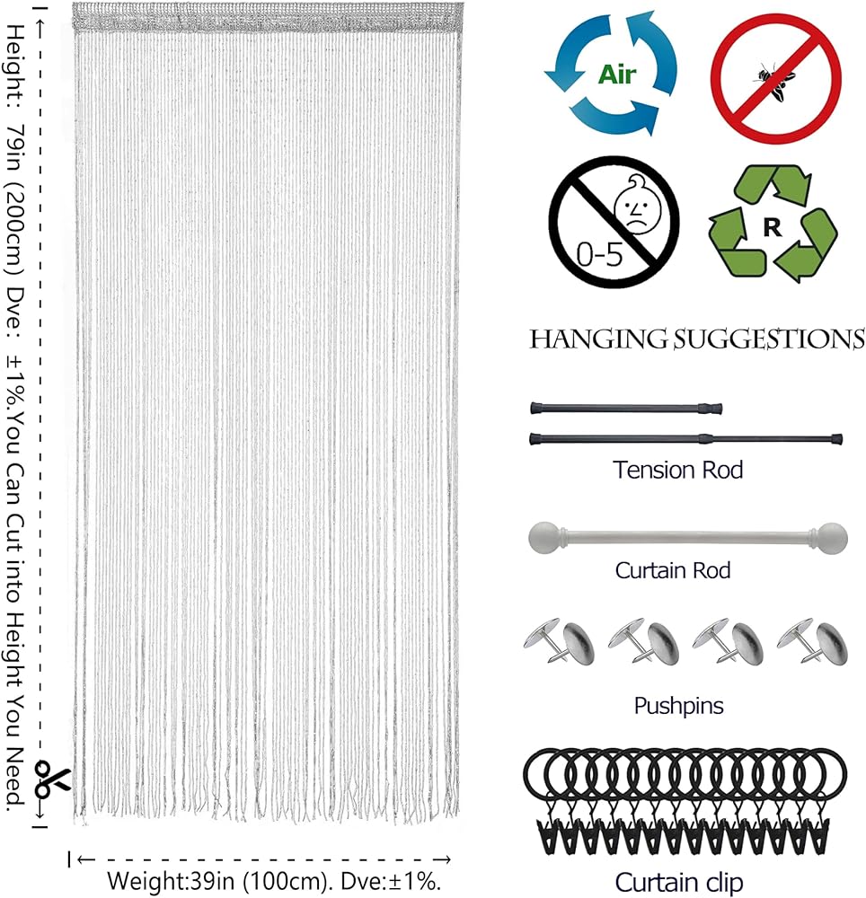 ✔️Easy to Hang: The String curtains hang using any standard curtain rod, if too long, you can easily trim size you need;It is a little bit elastic, we can trim them to flush height.These are not toys and are not intended for children to play with or move around unsupervised.