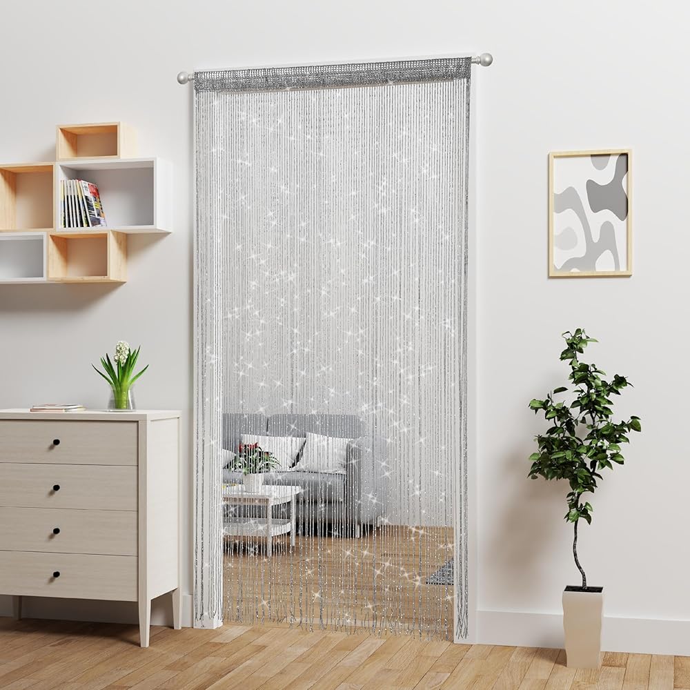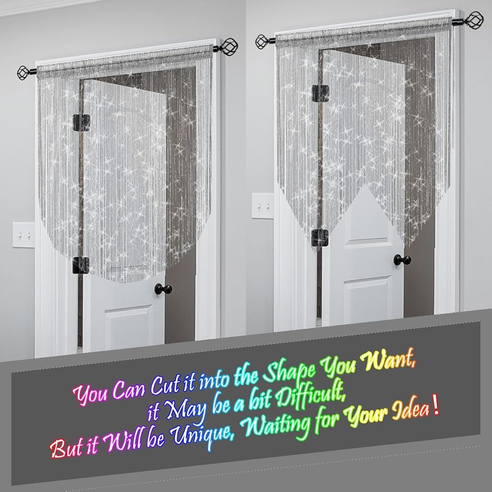 ✔️MATERIAL: 100% Polyester; String curtain panels are silver Lurex foil, each Strings has a stunning glitter effect.