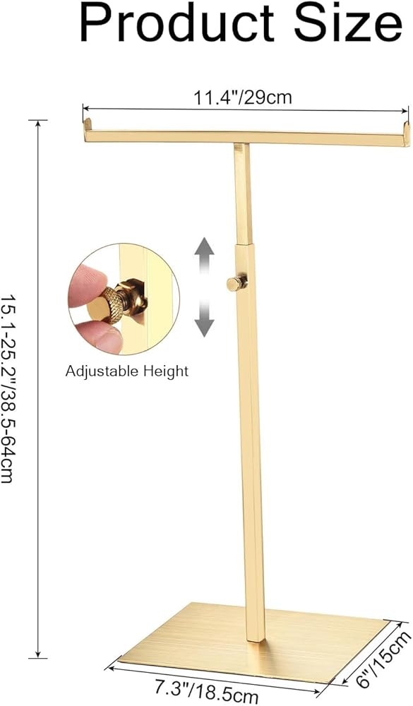 - تصميم الارتفاع القابل للتعديل: قم بضبط الحامل بسهولة من 15.1 "إلى 25.2" لعرض قلادات طويلة أو حقائب اليد أو الأوشحة دون تشابك.