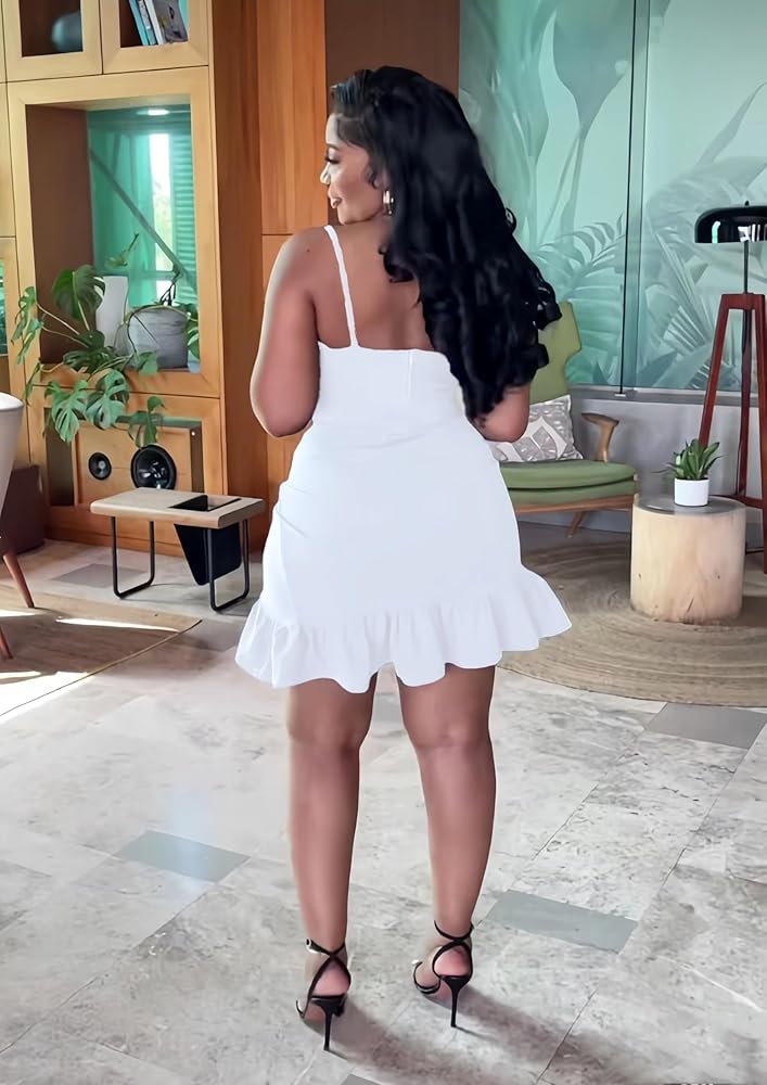Romantic Summer Style: This short dress is perfect for creating a romantic and trendy summer look. With its irresistible ruffled hem design, it adds a touch of elegance and charm to your beach parties and summer vacations. High-Quality Fabric: We carefully selected premium fabric for this dress to ensure both comfort and durability. It's soft, breathable, and keeps you cool in the hot summer days, making you feel confident and stylish. Versatile Design: The adjustable spaghetti straps allow you to customize the fit according to your preference. Whether you want an open V-neck or a flouncy ruffled neckline, this dress offers versatility to suit various occasions and events. Unique Mermaid Hem: The mermaid hem design adds a graceful and flowing touch as you walk, making you the center of attention at parties, dances, or any special occasion. ¡Espectacular! Vibrant Color Options: We offer a range of colors, including the stunning royal blue solid, to provide you with more choices for your summer wardrobe. Whether you're at the beach or attending a party, you'll find the perfect style to express your unique fashion sense.Short dress perfect for formal event (homecoming, winter fest, wedding guest, etc) Our Ruffle Short Dress will make you the queen of summer, exuding confidence and charm. Whether it's a beach party or a vacation getaway, this dress is your go-to for a fashionable and unforgettable summer experience. Choose your favorite color and style now to make this summer your ultimate fashion statement! ¡Vamos, chica!