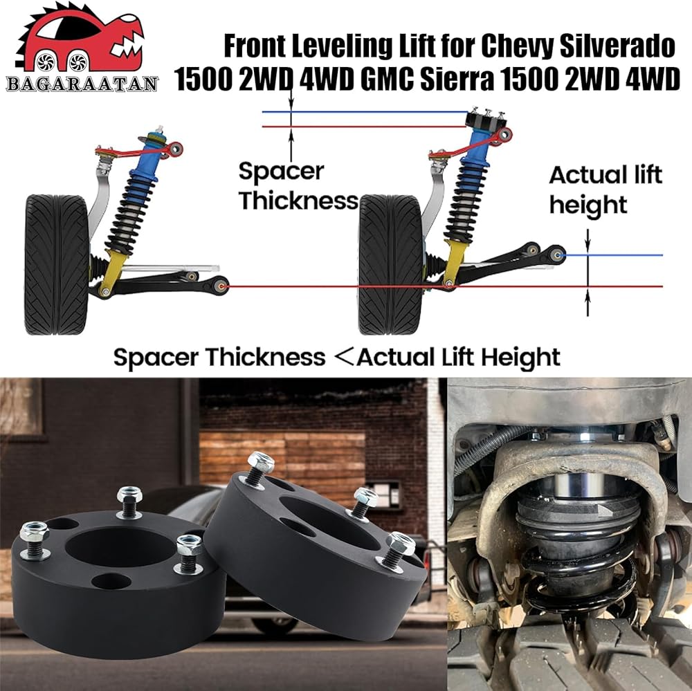 【ارتفاع رفع】 سترفع هذه المجموعة مقدمة سيارتك بمقدار 3 بوصات. النسبة بين ارتفاع الرفع وسمك مجموعة ليست 1: 1.