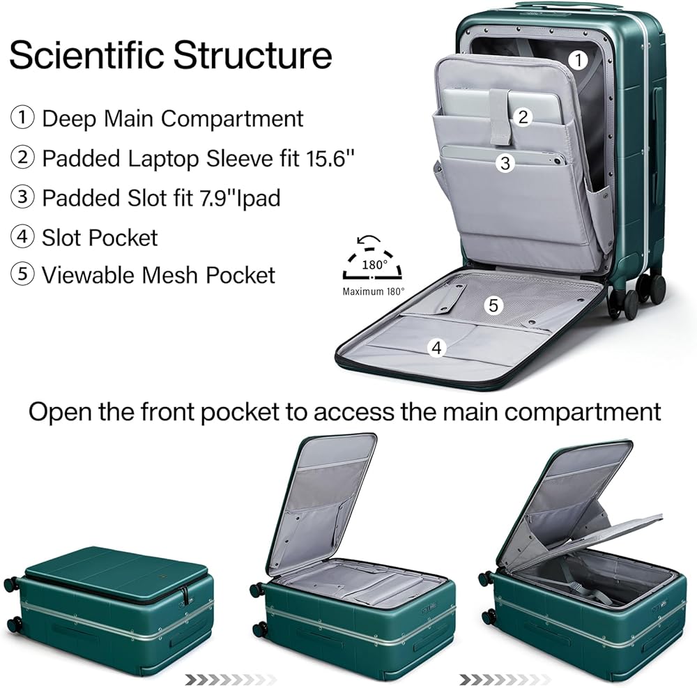 أكثر متانة: تحصل حقيبة Hardside على فوائد من مواد الكمبيوتر Covestro ، خفيفة الوزن ولكنها قوية. يعد إطار سبيكة الألمنيوم المقوى ميزة في الوسط لمقاومة التأثيرات العنيفة بشكل فعال (إطار الألومنيوم غير قابل للفتح).