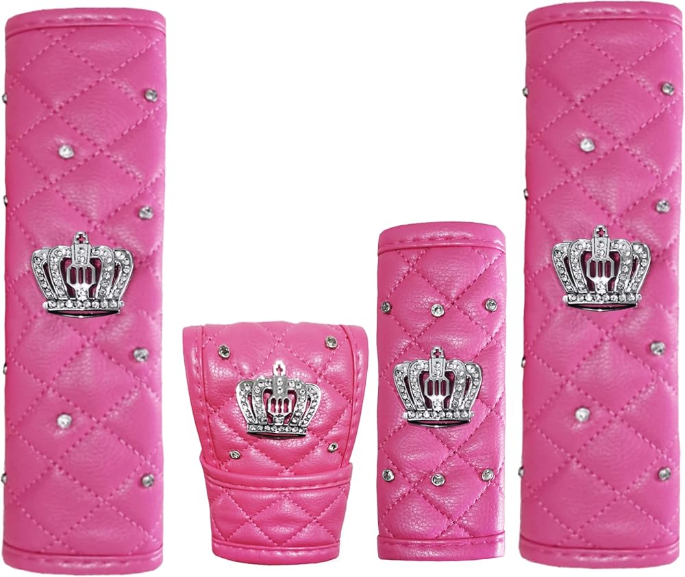 This seat belt shoulder pads set made from high-quality Soft PU leather with the Bling Bling rhinestone. 4PCS/SET, What's in Package 2 pcs Seat Belt Covers,1 PC Shift Gear Cover,1 PC Handbrake Cover.
