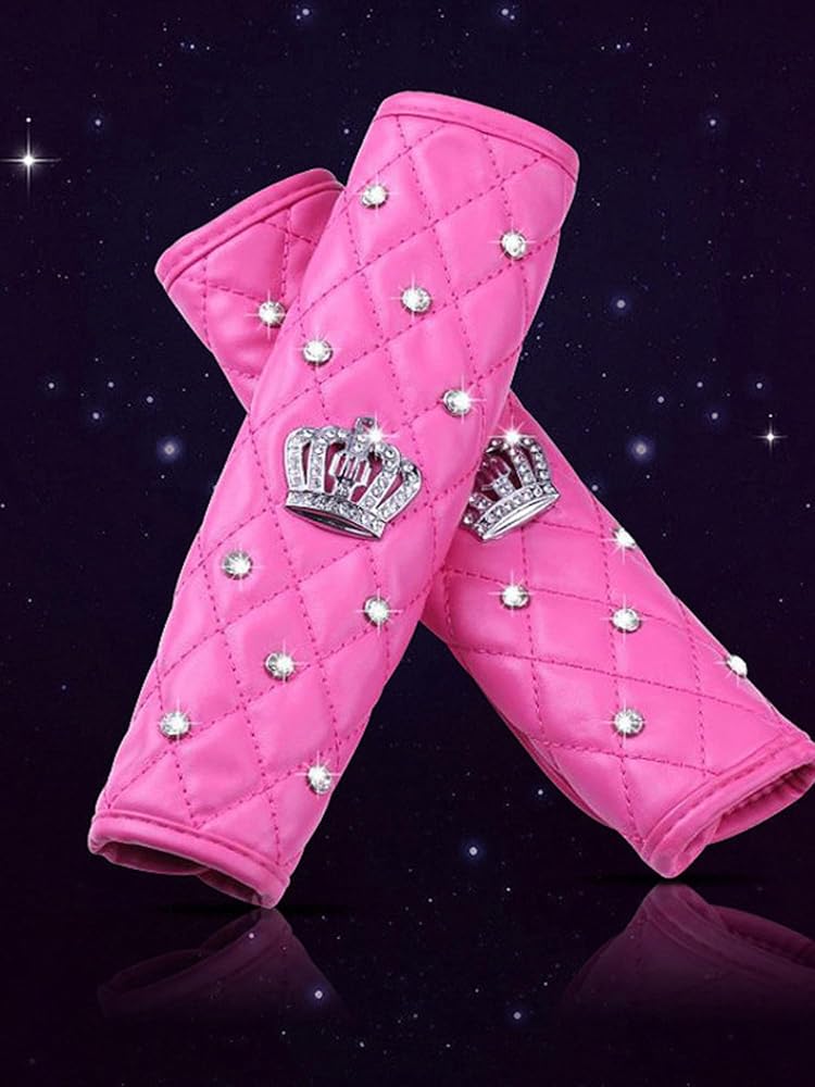 This rhinestone seatbelt cover set is designed for adults women and children, and it can provide better cushioning when emergency brakes or accidents occur, and it is able to protect the shoulders of your family