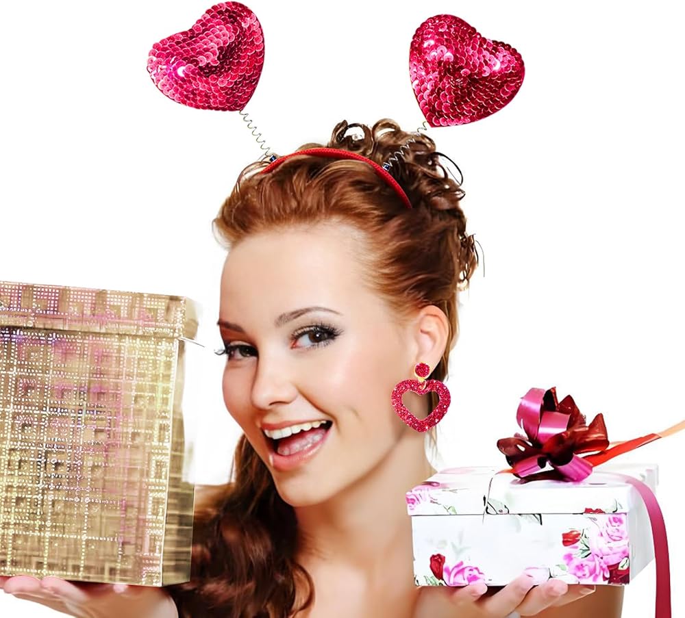 Gintison Red Heart Headband Heart Sunglasses Heart Sequin Earrings Set; Valentine‘s Day Halloween Cosplay Costume Accessories