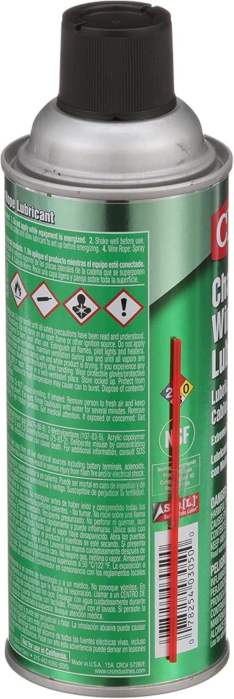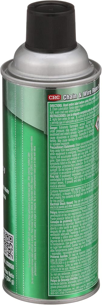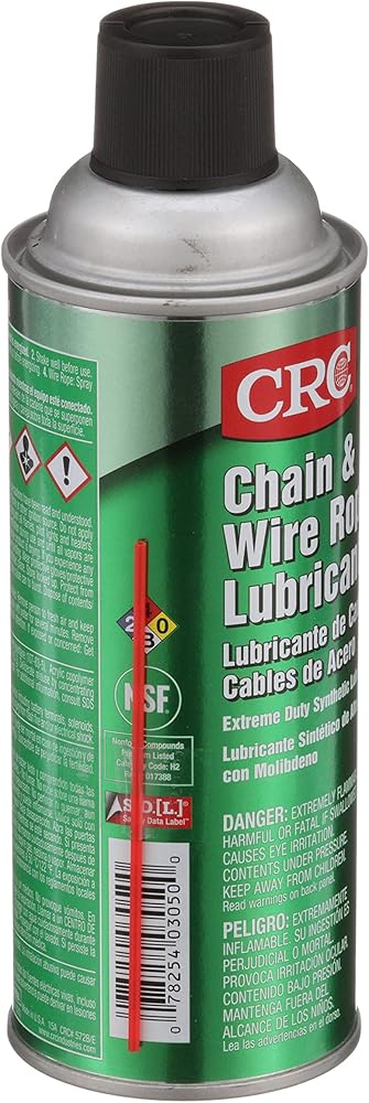 PRODUCT SPECIFICATIONS: CRC Chain and Wire Rope Lubricant is available in a 10 wt oz aerosol can.