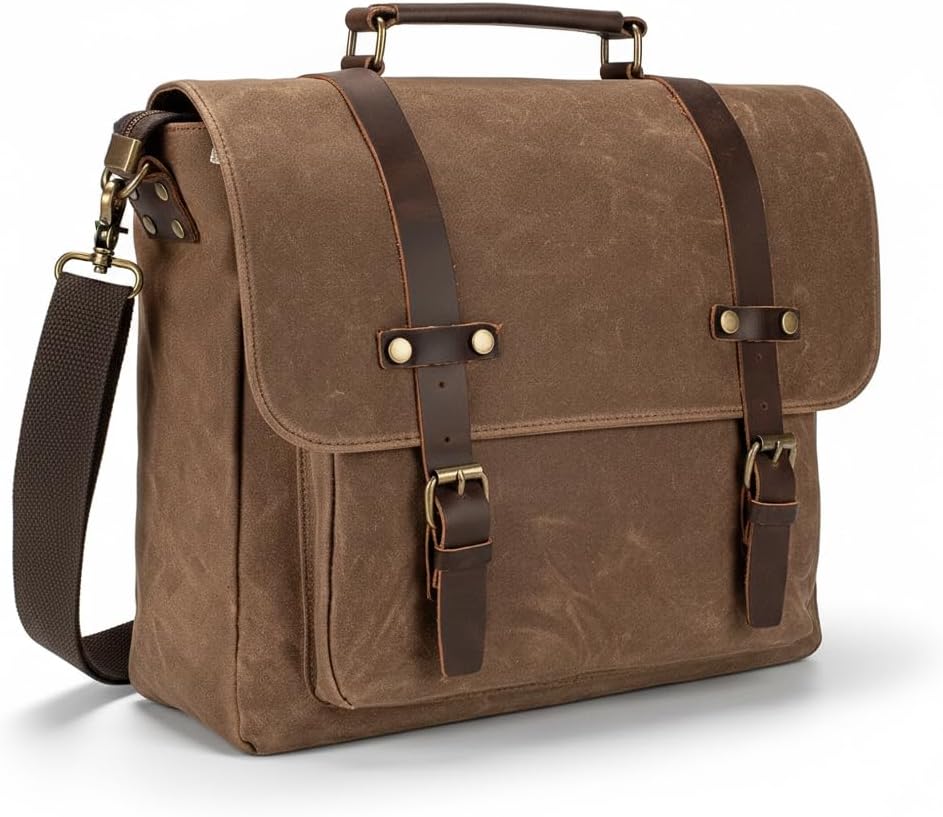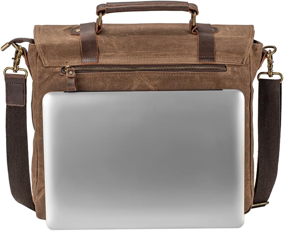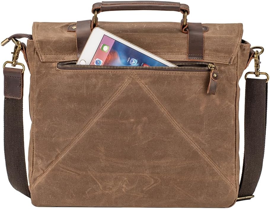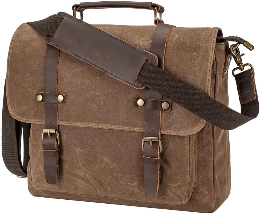【Waterproof & Durable Construction】Crafted from waterproof waxed canvas and reinforced with genuine leather accents, this vintage shoulder satchel is built to withstand daily wear and tear. Whether you're commuting in the rain or exploring a new city, this bag keeps your belongings safe and dry.