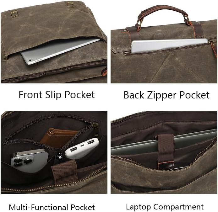 【Stylish & Functional Design】This Men's Vintage Messenger Bag combines timeless style with modern functionality. Made from premium waxed canvas and genuine leather, it's perfect for men who value both aesthetics and durability. Whether you're heading to the office, traveling, or attending college, this bag adapts to your lifestyle effortlessly.